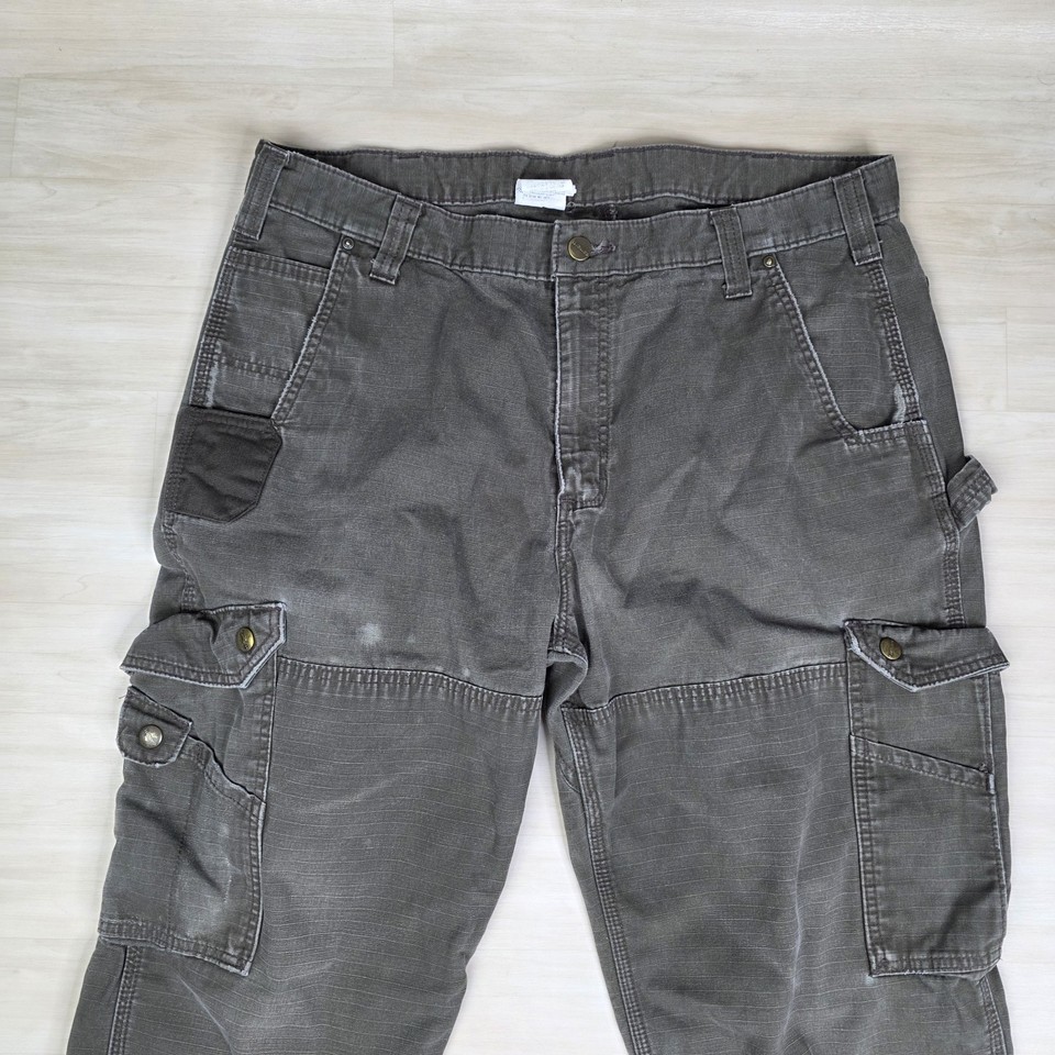 Carhartt Ripstop Work Canvas Utility Pants Brown Cargo B342 DFE Size 38 x 32