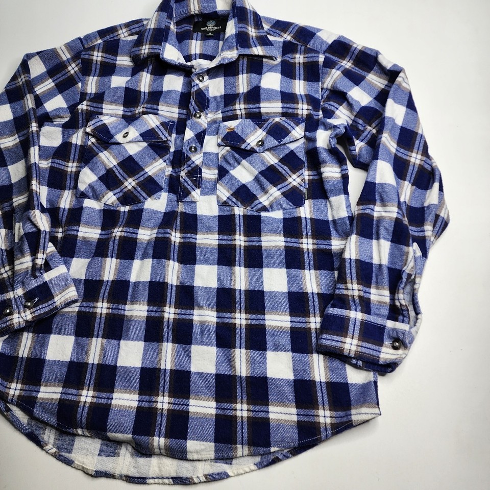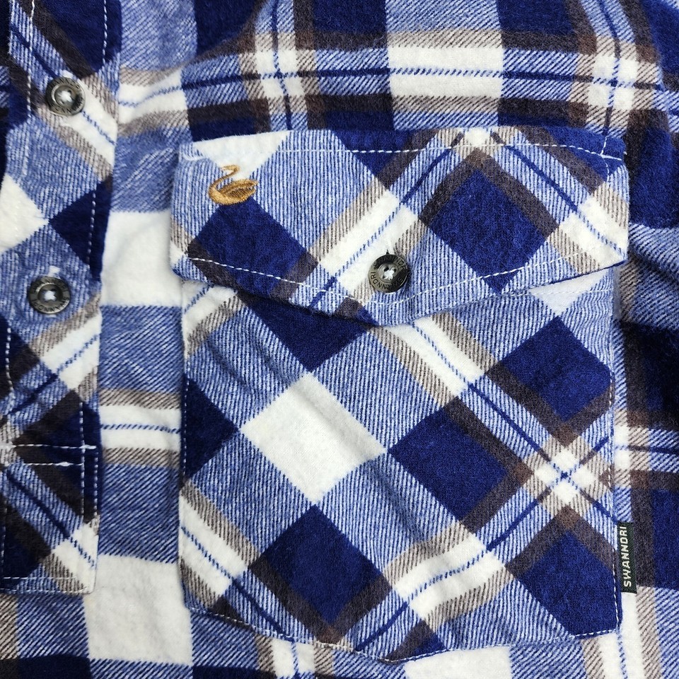 Swanndri Henley Flannel Button Shirt Cotton Blue Plaid