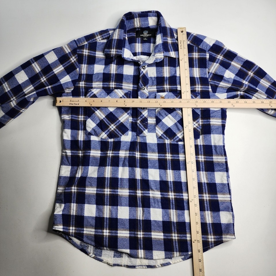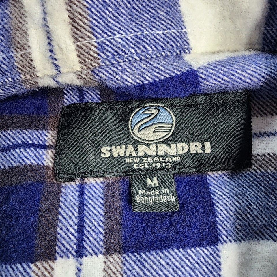 Swanndri Henley Flannel Button Shirt Cotton Blue Plaid Size Medium