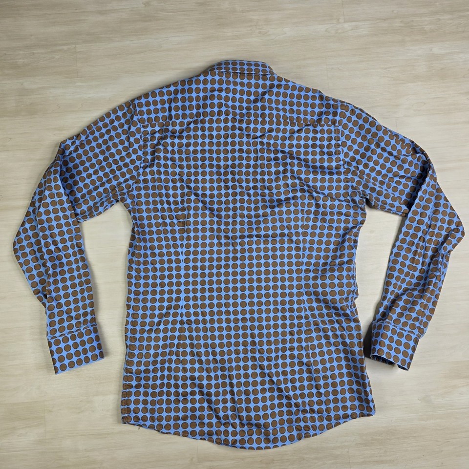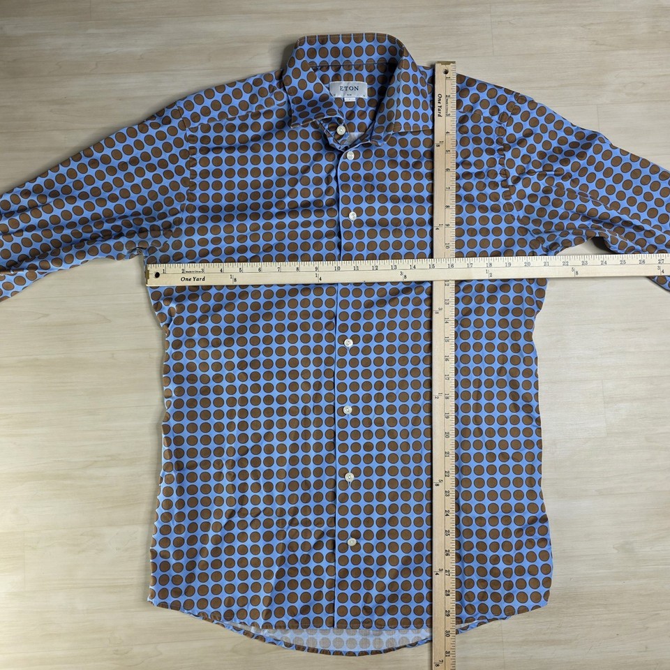 Eton Slim Twill Brown Blue Polka Dot Long Sleeve Shirt Men's Size Large 16 41
