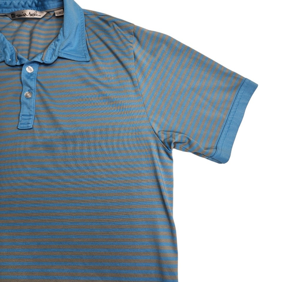Travis Mathew Golf Polo Shirt Size Medium Gray Blue Striped Stretch Performance