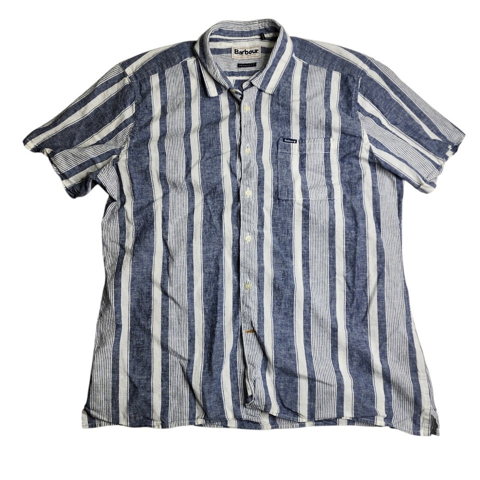Barbour Stonebay Regular Short Sleeved Striped Shirt Cotton Men's Size Small