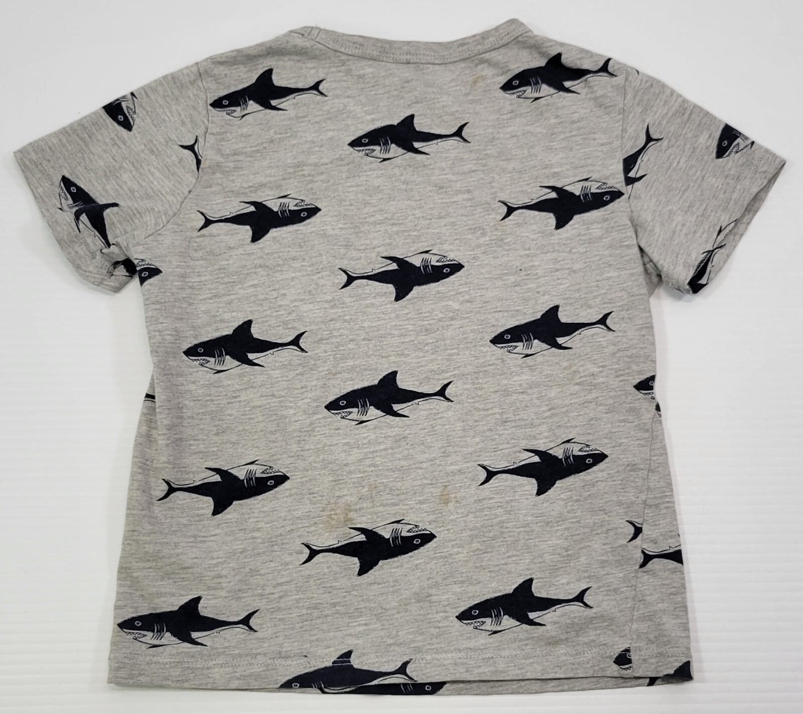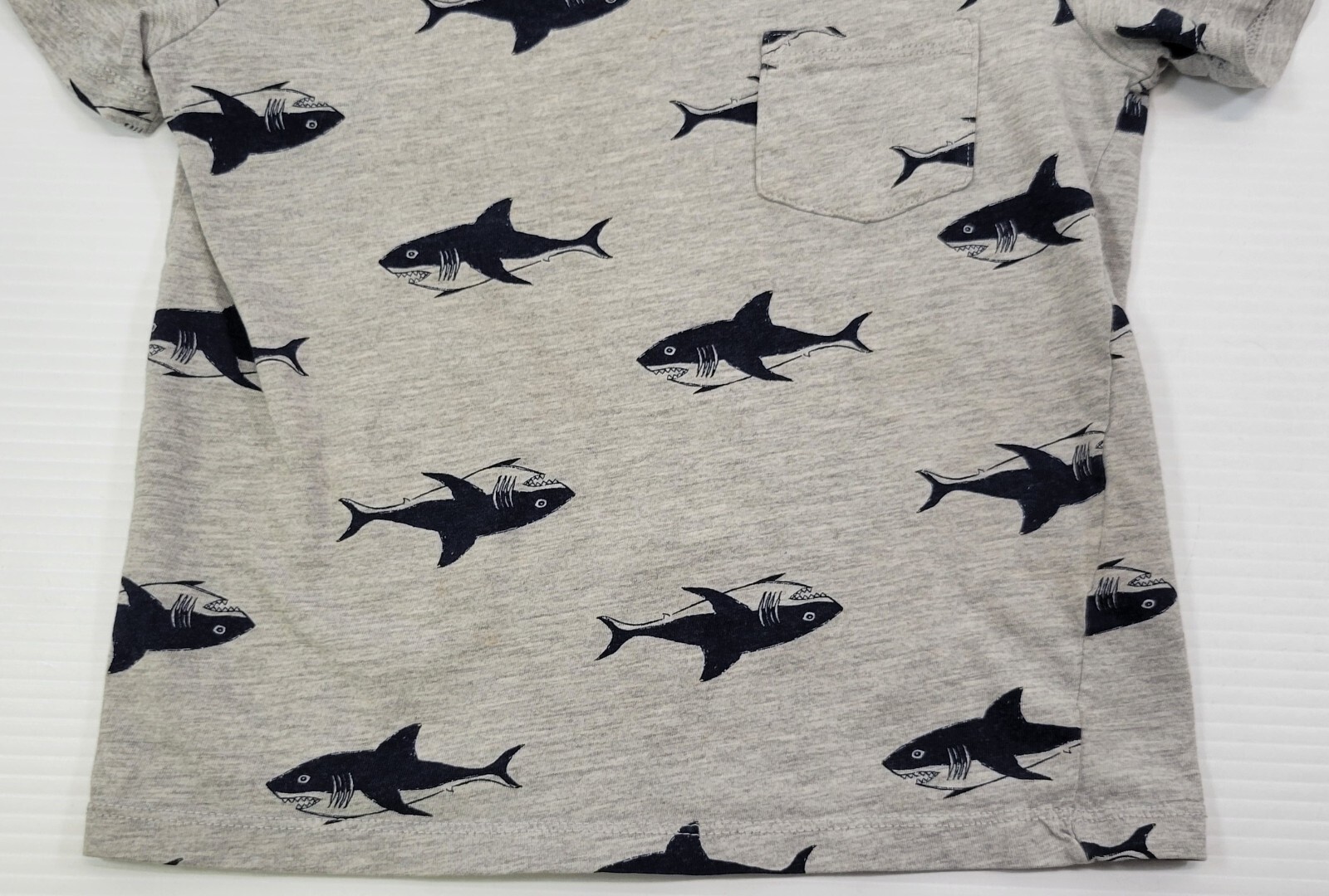 L) H&M Basic Cotton Kids Gray All Over Shark Print T-Shirt 4-6Y