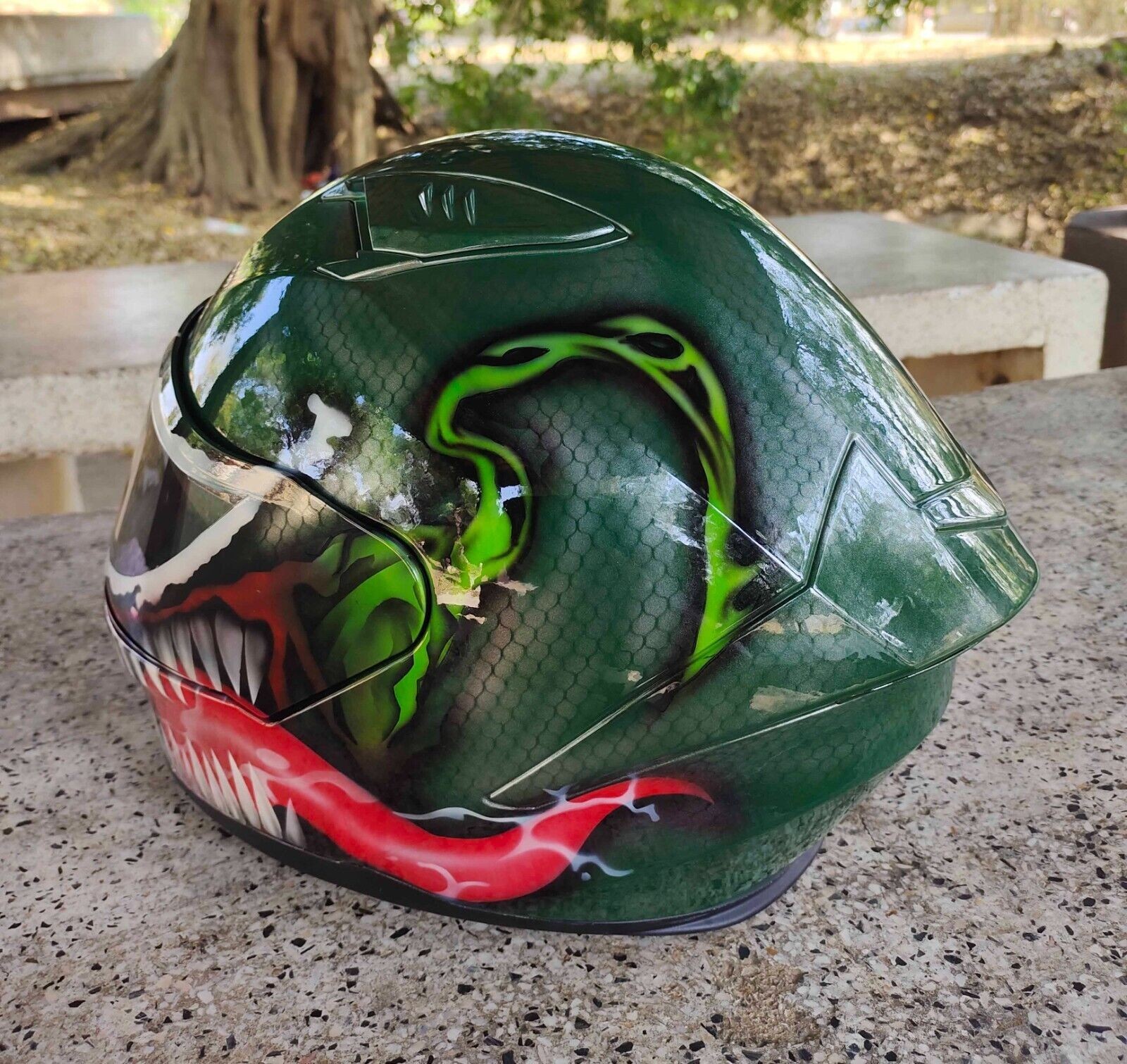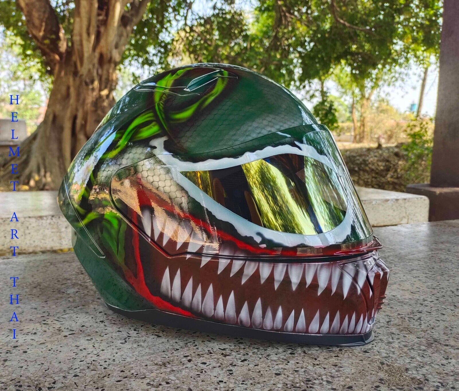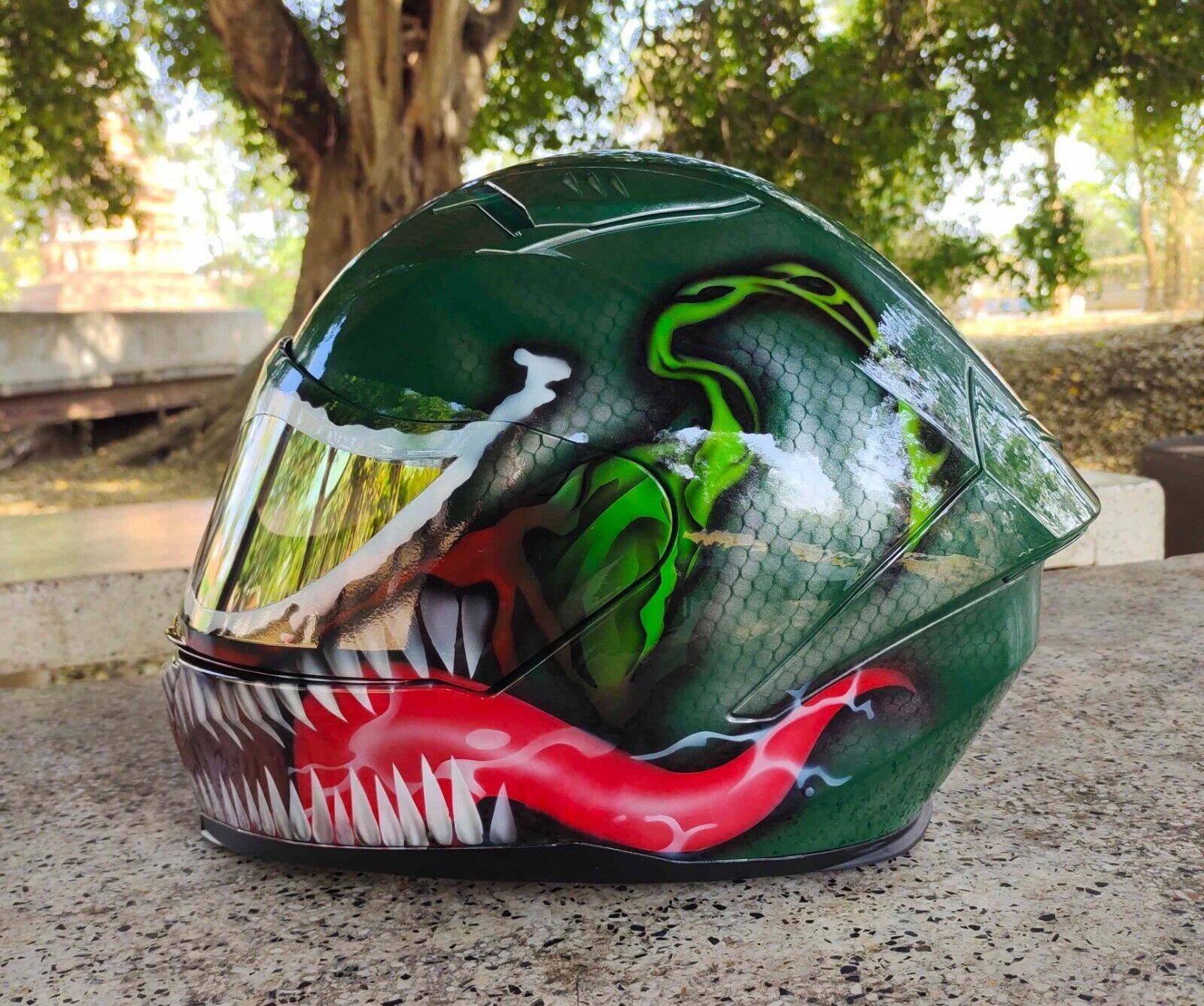 GREEN VENOM maßgeschneiderter Airbrushed-Motorradhelm