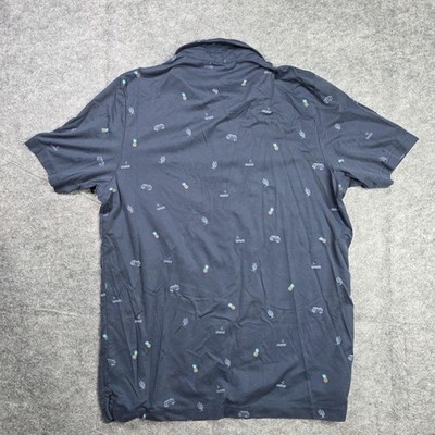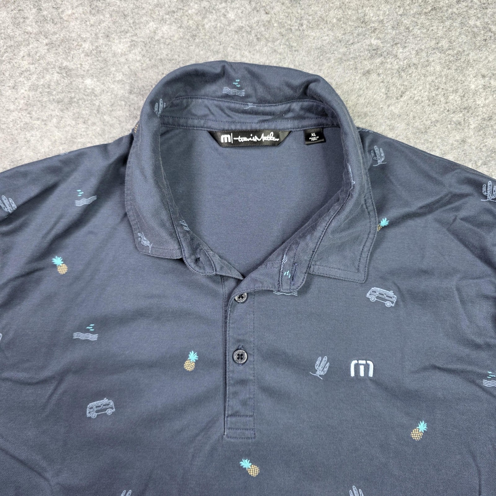 Travis Mathew Polo Shirt Mens XL Blue Pineapple Cactus Golf Performance