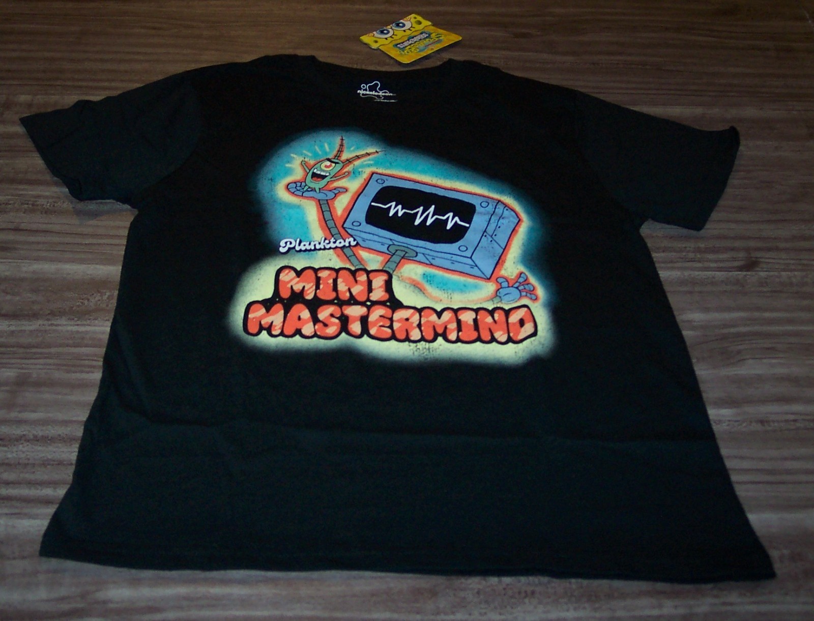 This is a Vintage Style Nickelodeon SPONGEBOB SQUAREPANTS PLANKTON Mini Mastermind T-shirt. It is a size SMALL, and it is NEW with the tag. It is 20 inches from armpit to armpit and 27 inches in length. The print is made to look vintage. Combine auctions to save on shipping. AD