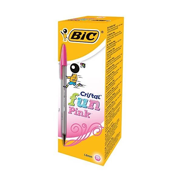 BiC Cristal Fun Ballpoint Pens with Large 1.6 mm Tip - Pink, Pack of 20