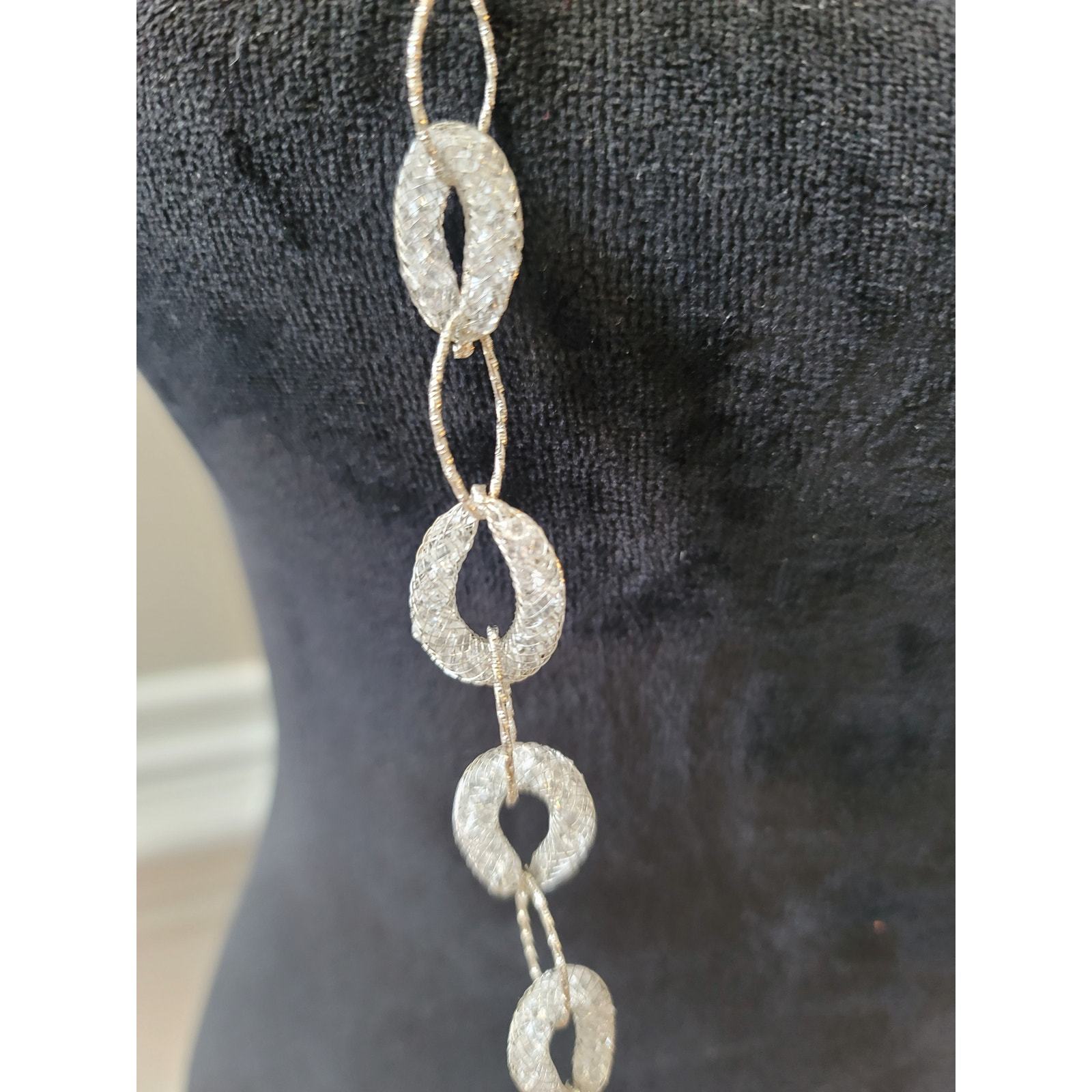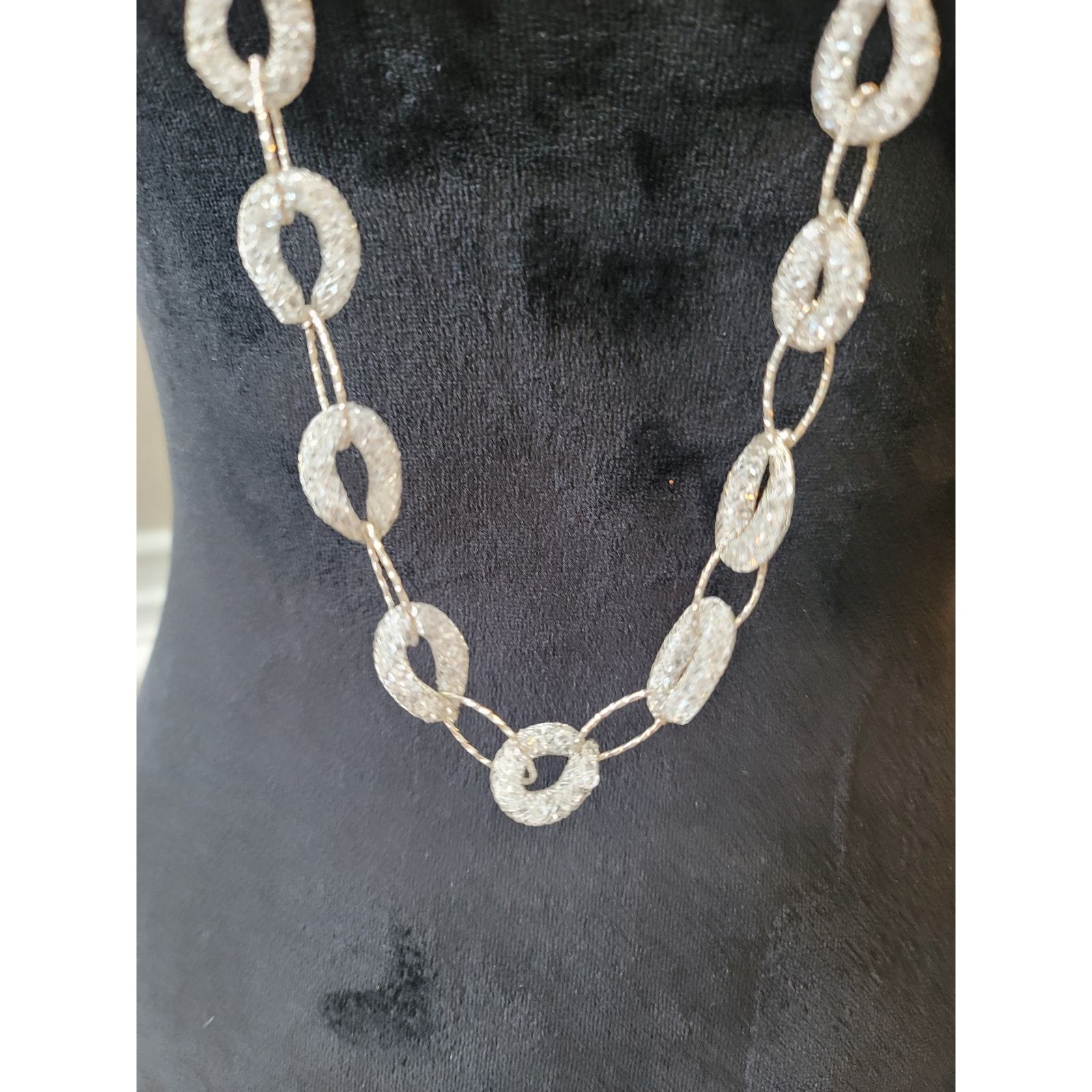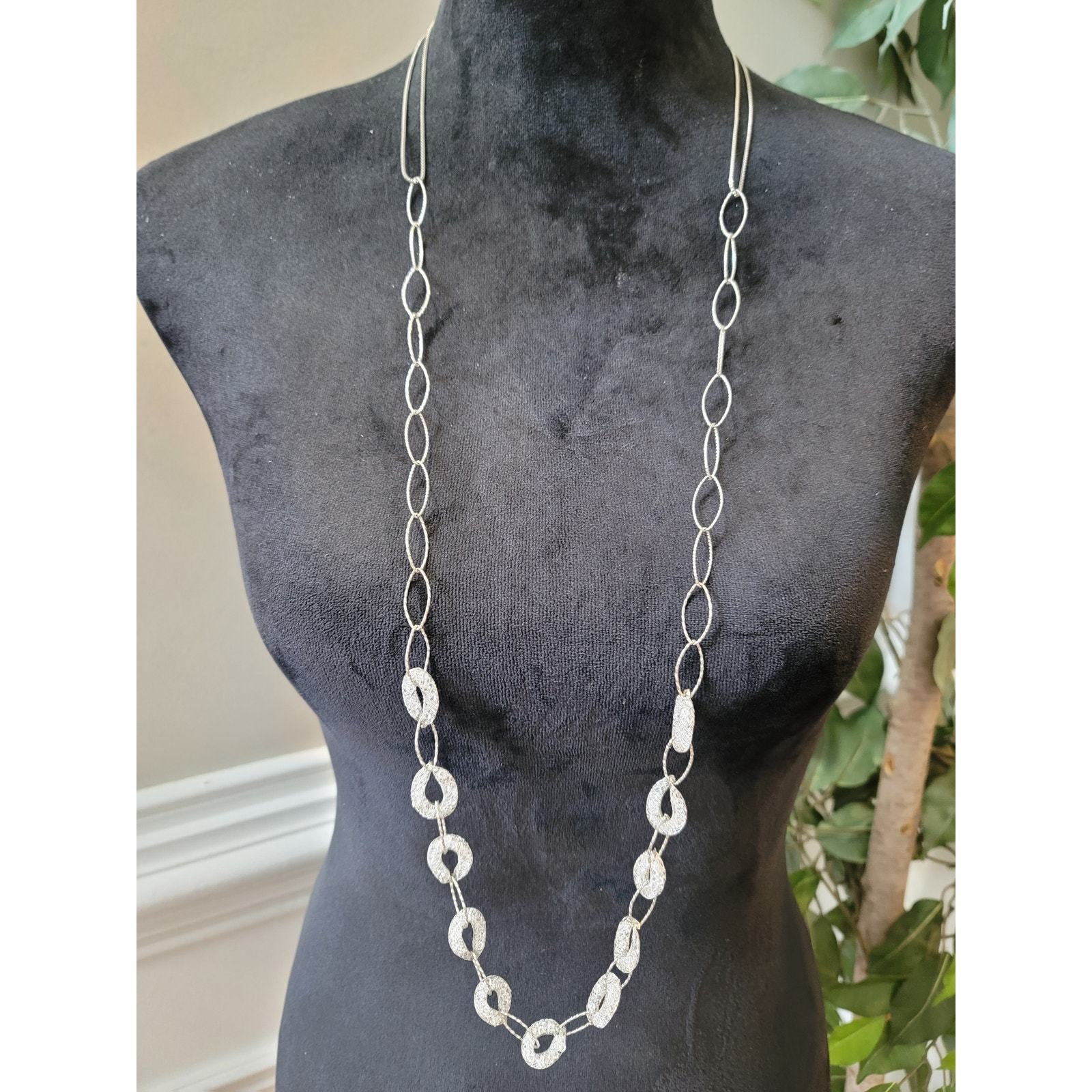 Women's Long Textured Oval Link Necklace with Lobster Claw Lock Elegant Design