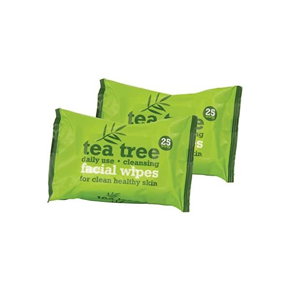 Tea Tree Daily Use Cleansing Facial Make Up Wipes, Pack of 2, Total 50 Wipes
