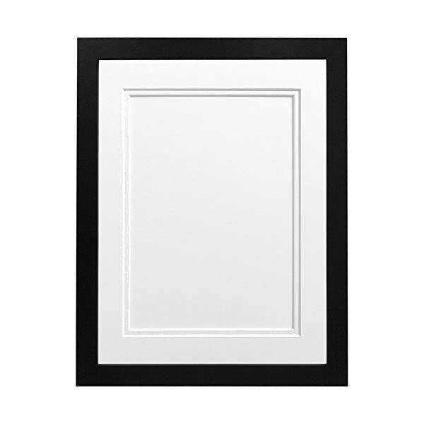 FRAMES BY POST H7 Picture Photo Frame, Wood, Black with White Double Mount, 6 x