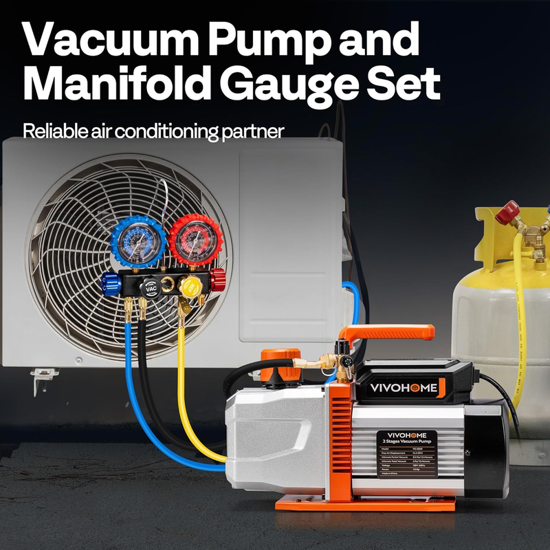 VIVOHOME Double Stage Vacuum Pump with Manifold Gauge Kit
