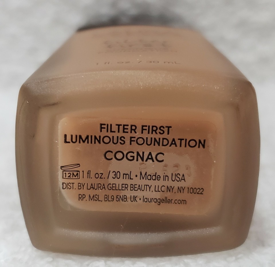 1 Brand New In Original Box *Accidently Pumped Leaked Inside the Box* Unsealed Full Size Glass Pump Bottle by Laura Geller New York COGNAC Filter First Luminous Foundation! Original Formula! Discontinued Hard to Find! 100% Authentic!