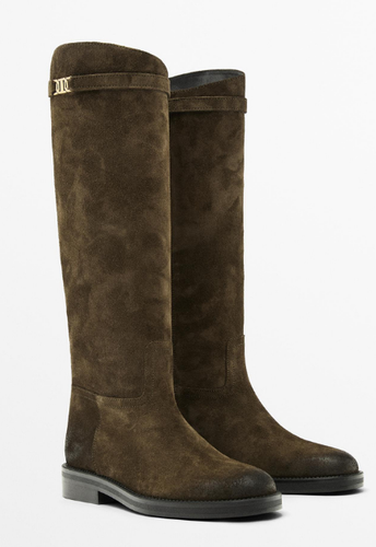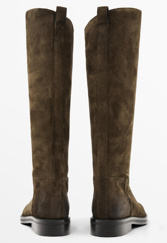 MASSIMO DUTTI BNWT 2025. KHAKI LEATHER SPLIT SUEDE RIDING BOOTS. 1000/650