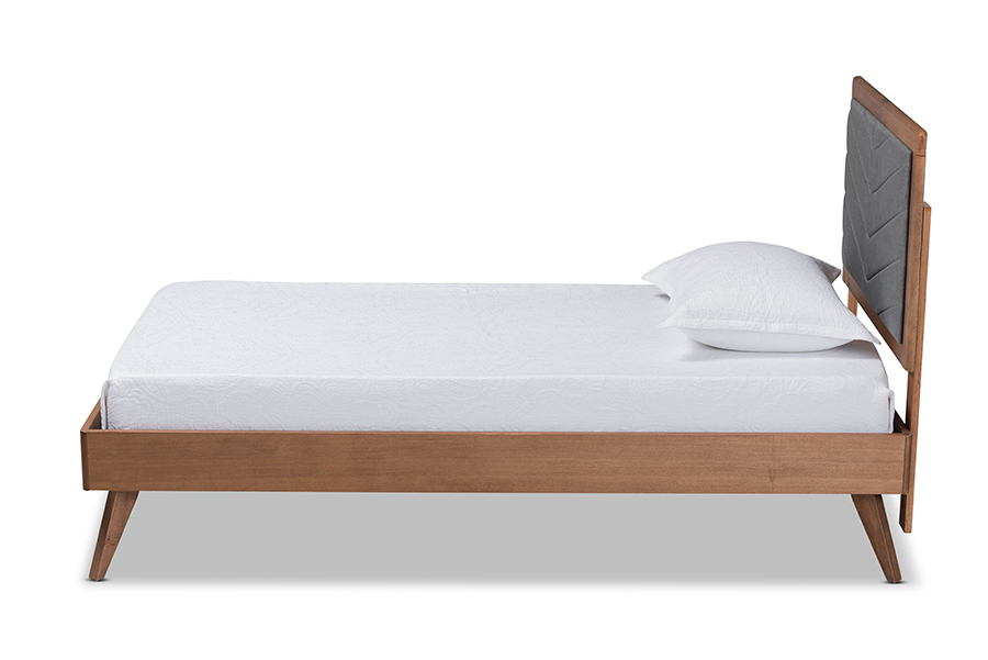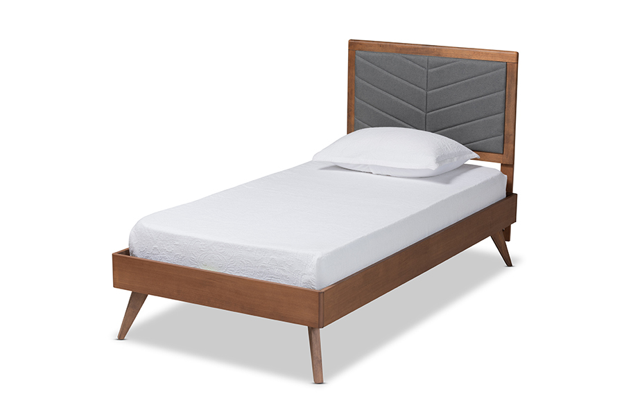 Asher Dark Gray Fabric Walnut brown Twin Size Platform Bed