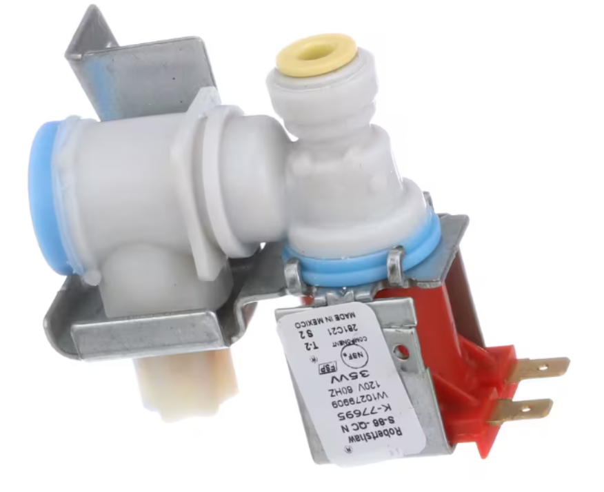 The Whirlpool W10279909 Solenoid Valve is a genuine OEM replacement part designed for Whirlpool, Maytag, Amana, and other affiliated refrigerators. This single water inlet valve controls the flow of water to the icemaker, ensuring consistent and reliable ice production. If your icemaker is not filling, producing small or no ice cubes, or leaking, replacing the inlet valve restores proper water flow and ice-making performance.