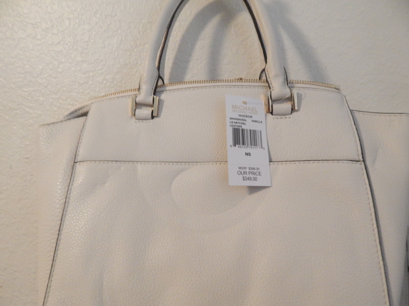 NEW Authentic MICHAEL KORS Hudson Large Pebbled Leather Satchel/Shoulder vanilla