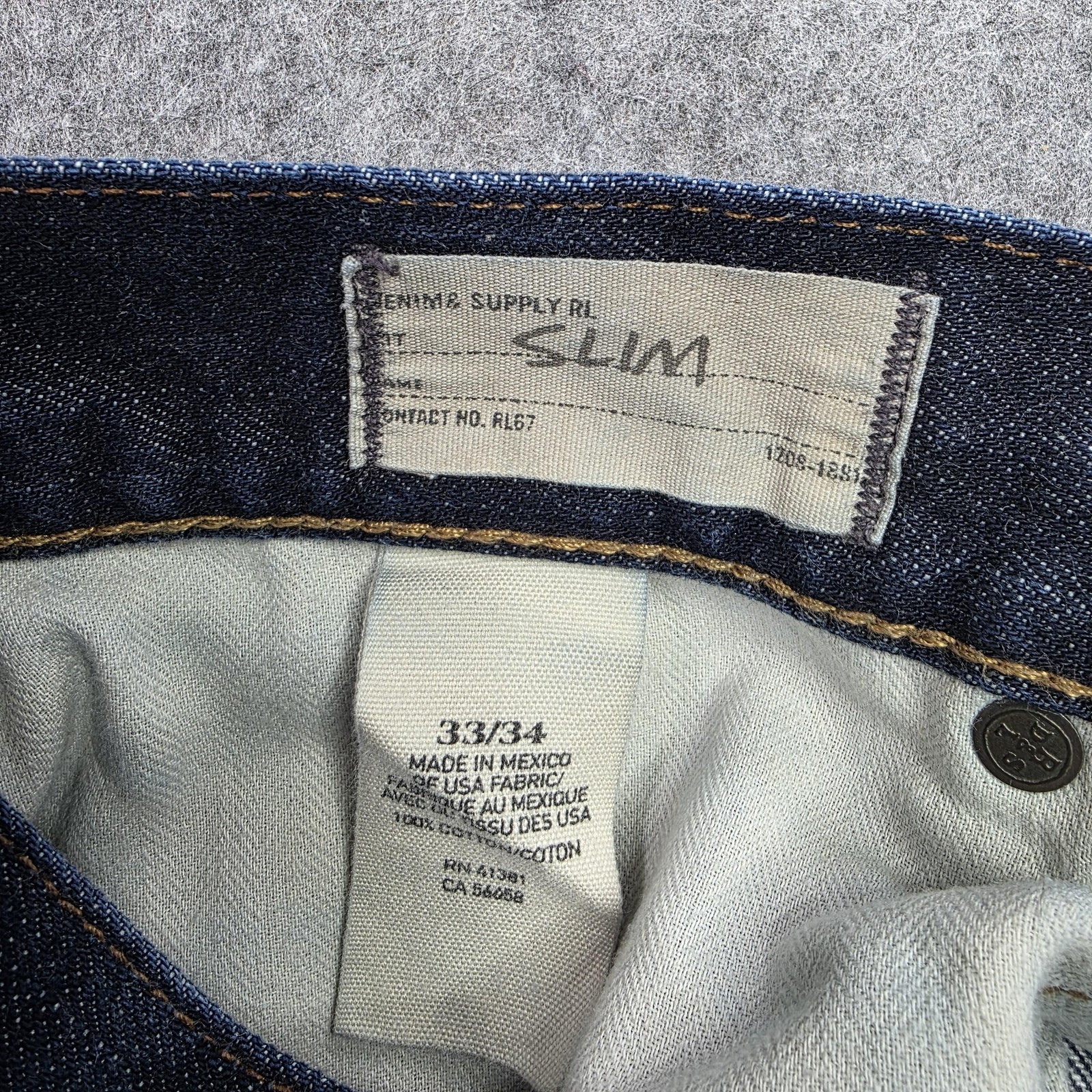 Denim Supply Ralph Lauren Jeans Mens 33x34 Blue Slim Selvedge WSP Made USA Fabric