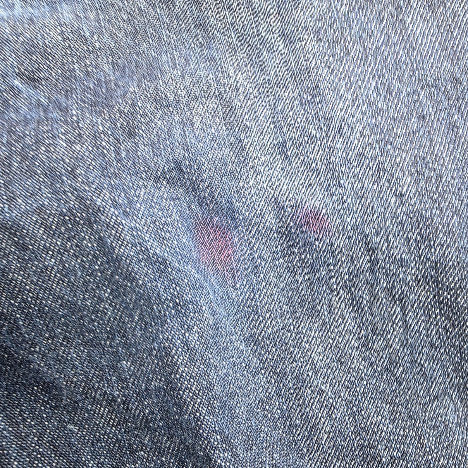 Condition: Good used condition. Signs of wear and two small reddish marks/stains on front left thigh (see photos). No significant holes or tears.