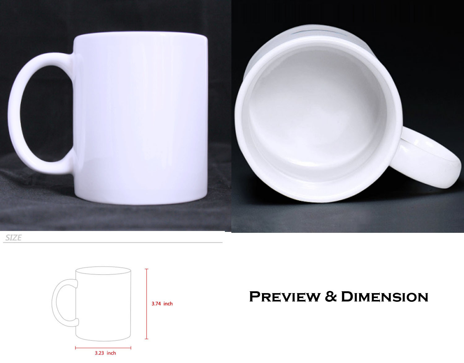 Your favorite design saying is a great way to start the day. Use our white mug to showcase your creativity. It has a large handle that’s easy to hold and comes in 11oz sizes.