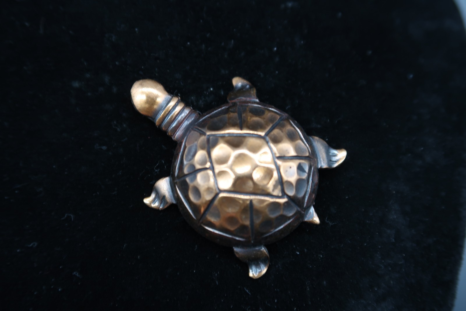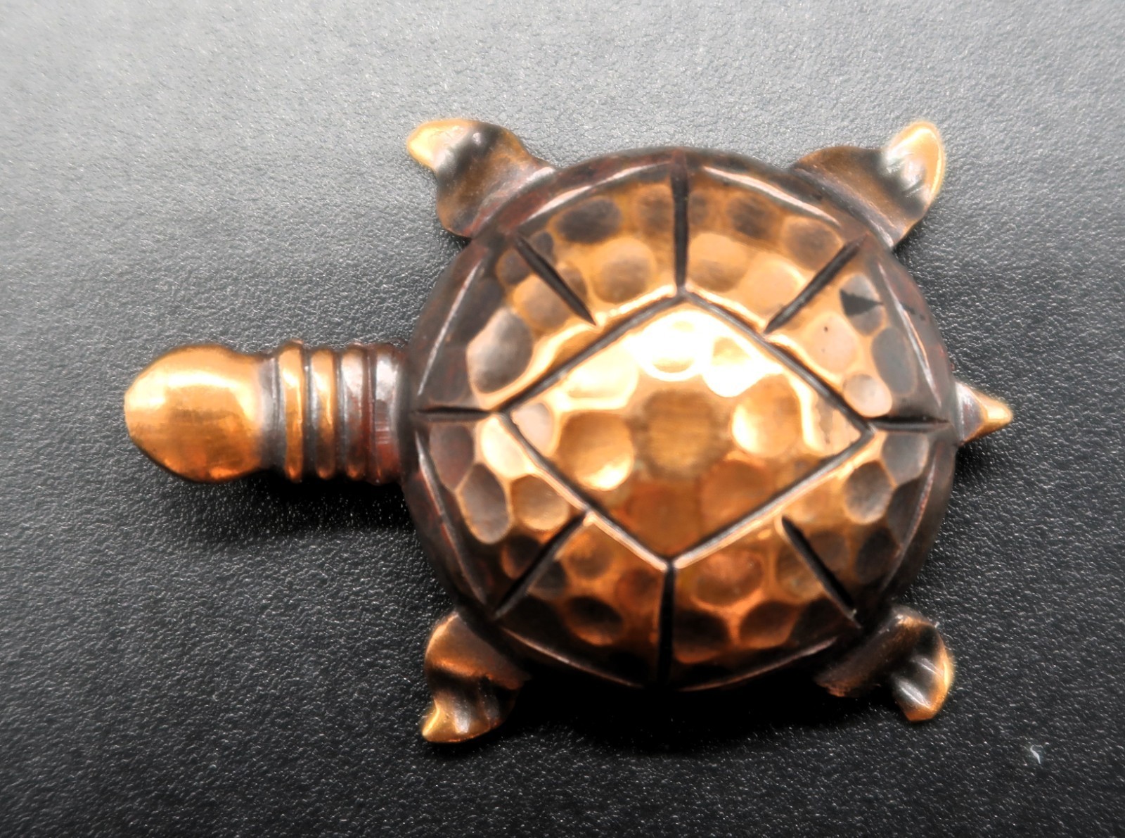 Vtg Copper Brass Tone Turtle Tortoise Brooch Hammered Look Unique