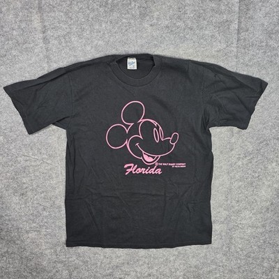 Vintage Disney Mickey Mouse Shirt Mens Large Black Florida Velva Sheen 80s USA