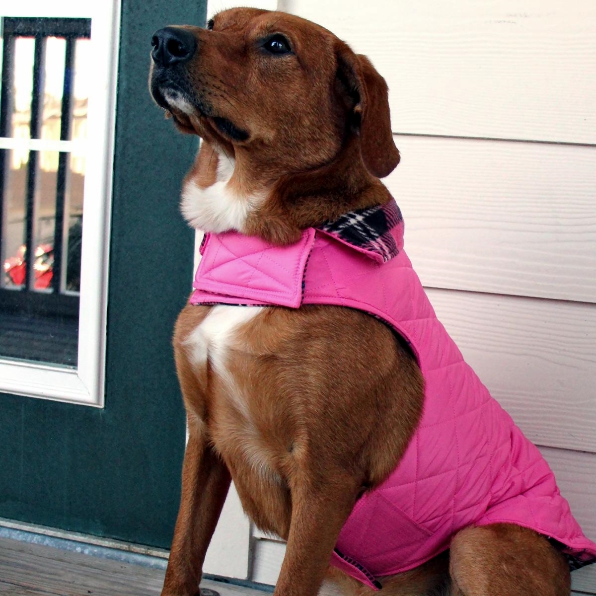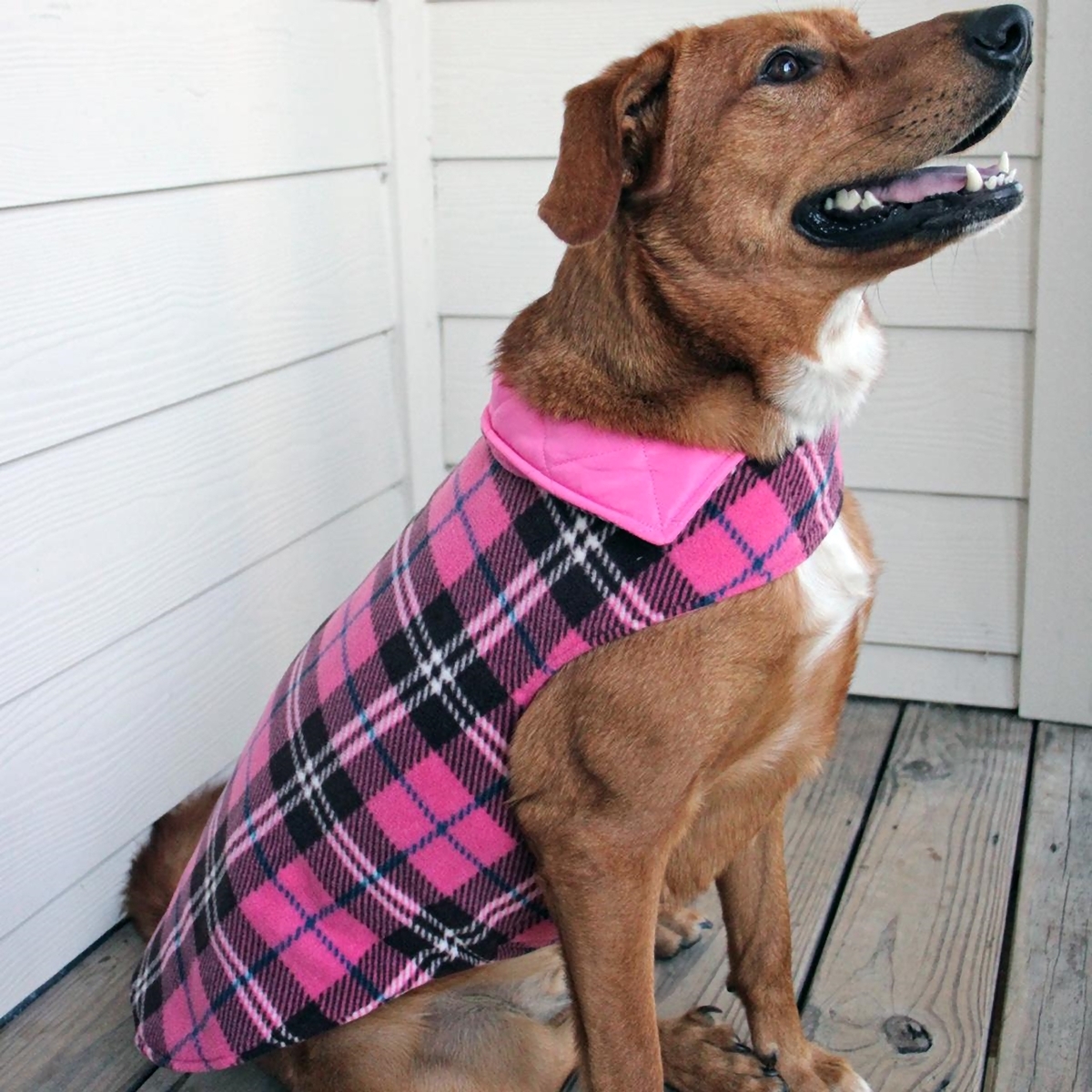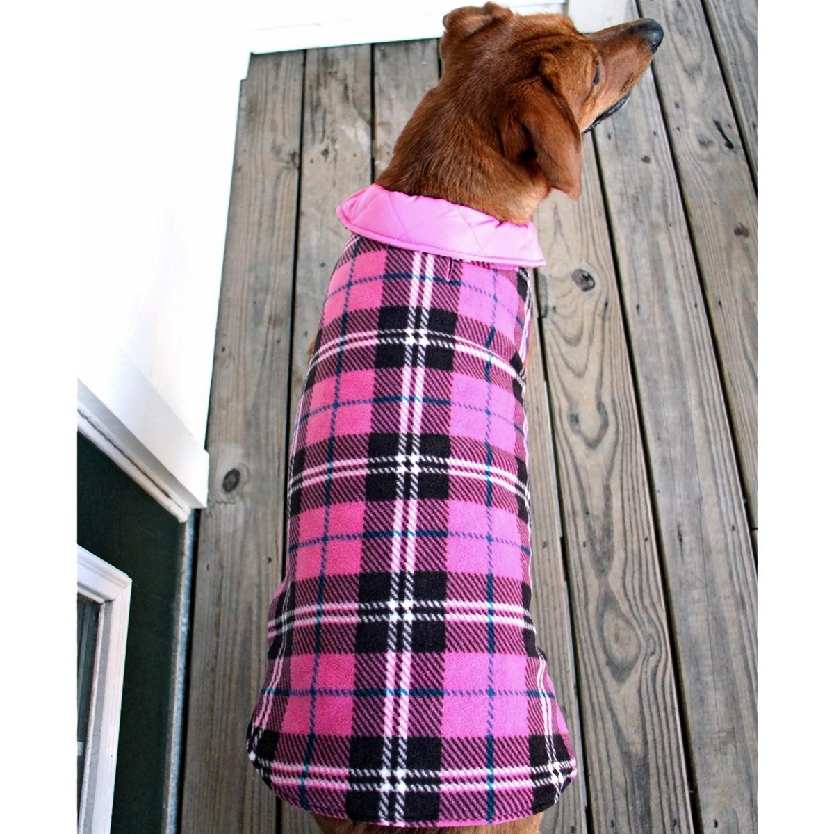 Warm Reversible Fleece Lined Pink & Pink Black Plaid Puffer Dog Coat Sizes XS-3X