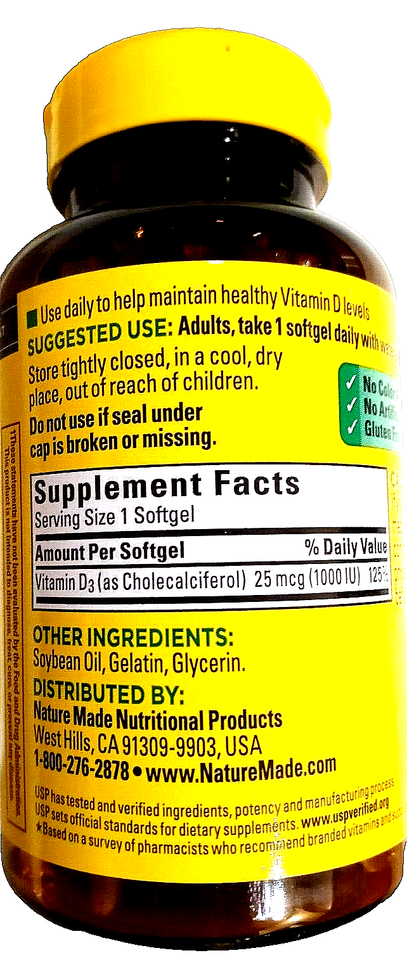 Nature Made Vitamin D3 1000 iu (25 mcg) 650 and similar items