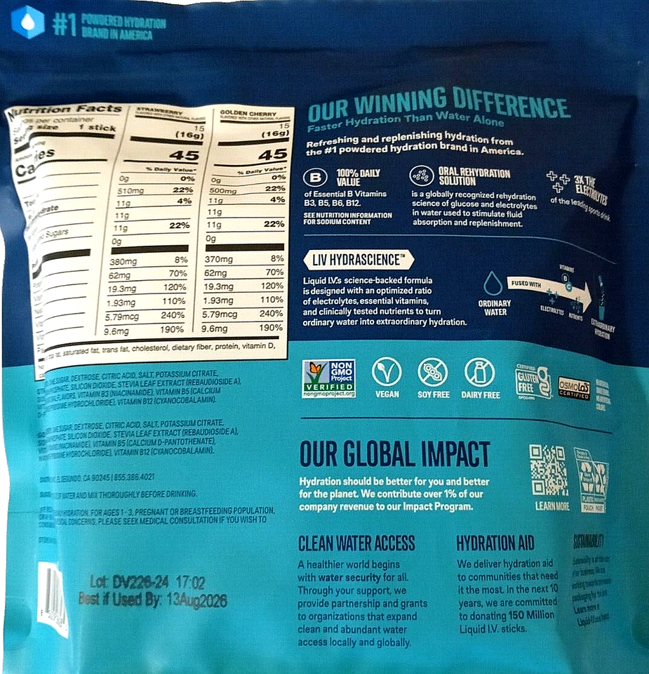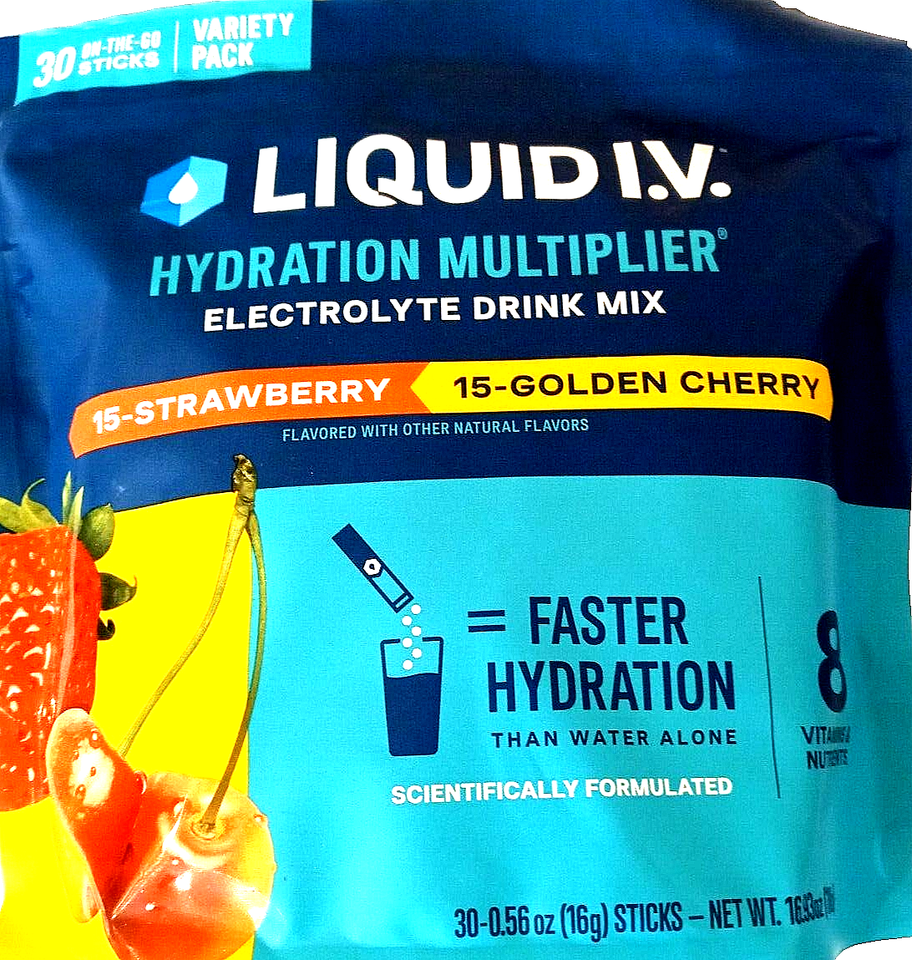 Liquid I.V. Hydration Multiplier Electrolyte Drink Strawberry Golden Cherry 30Ct