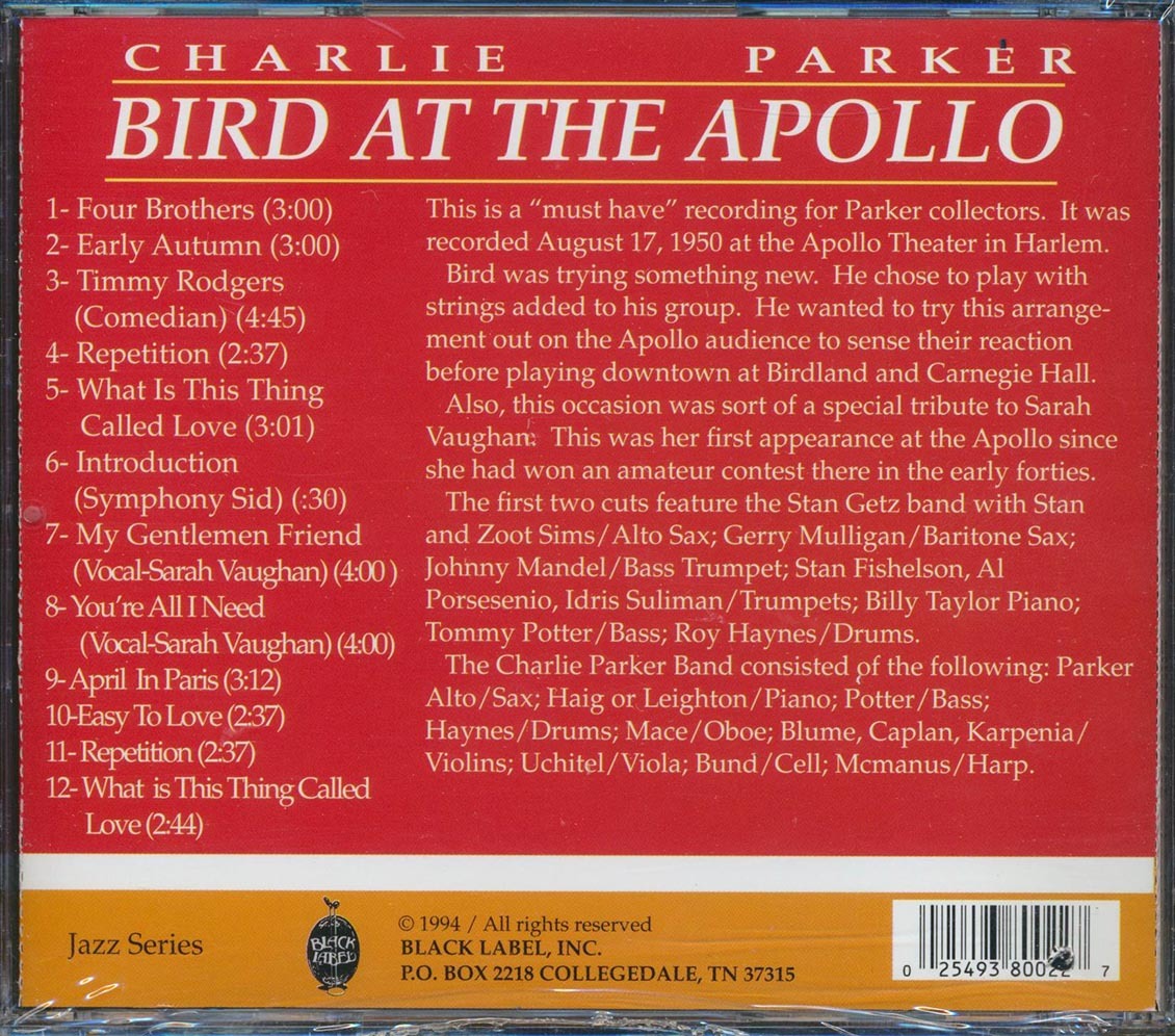 Charlie Parker - Bird At The Apollo and 2 similar items