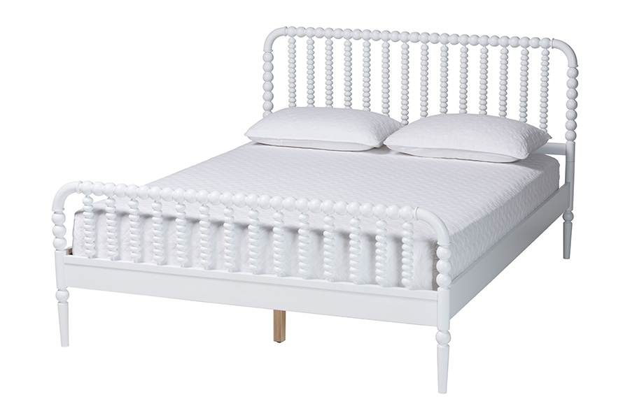 Features: Mid-Century Full Size Platform Bed Constructed from Rubberwood and Engineered Wood Turned bobbin design rich with traditional charm Slatted wood headboard and accent footboard Tapered legs provide excellent stability No Box Spring Required: Wood slats eliminate the need for a box spring Set Includes: One (1) Full Size Bed