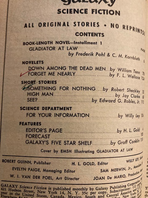 June 1954 GALAXY SCIENCE FICTION Magazine! Gladiator at Law by Kornbluth Pohl! Overall good. Cover/spine wear as shown. Tick marks on index page. Please refer to images.