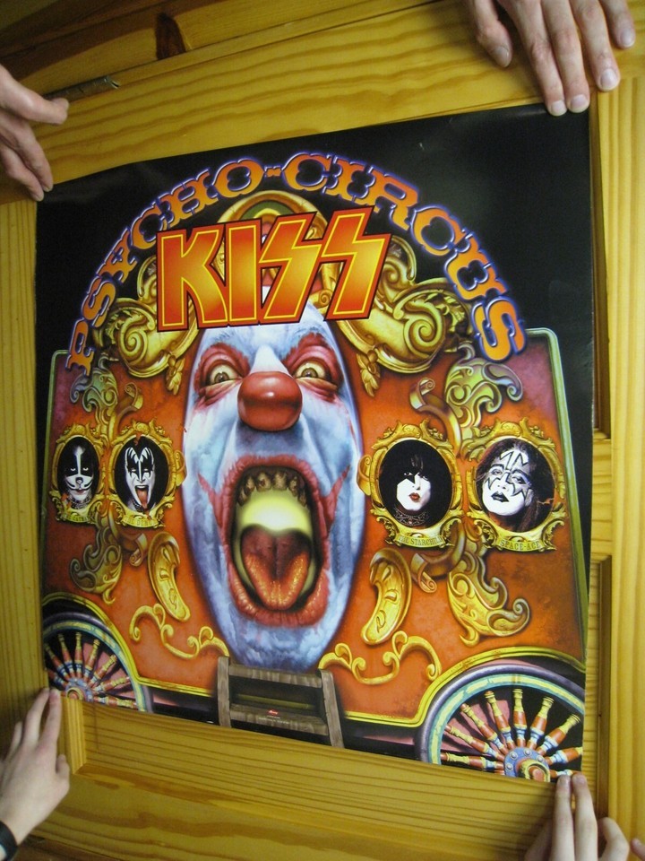 Cette affiche est de 24 pouces par rapport a 24 pouces environ. Il est en parfait etat. Il est a 2 cotes. L'affiche sera expediee roulee dans un tube en carton dur. Dossiers