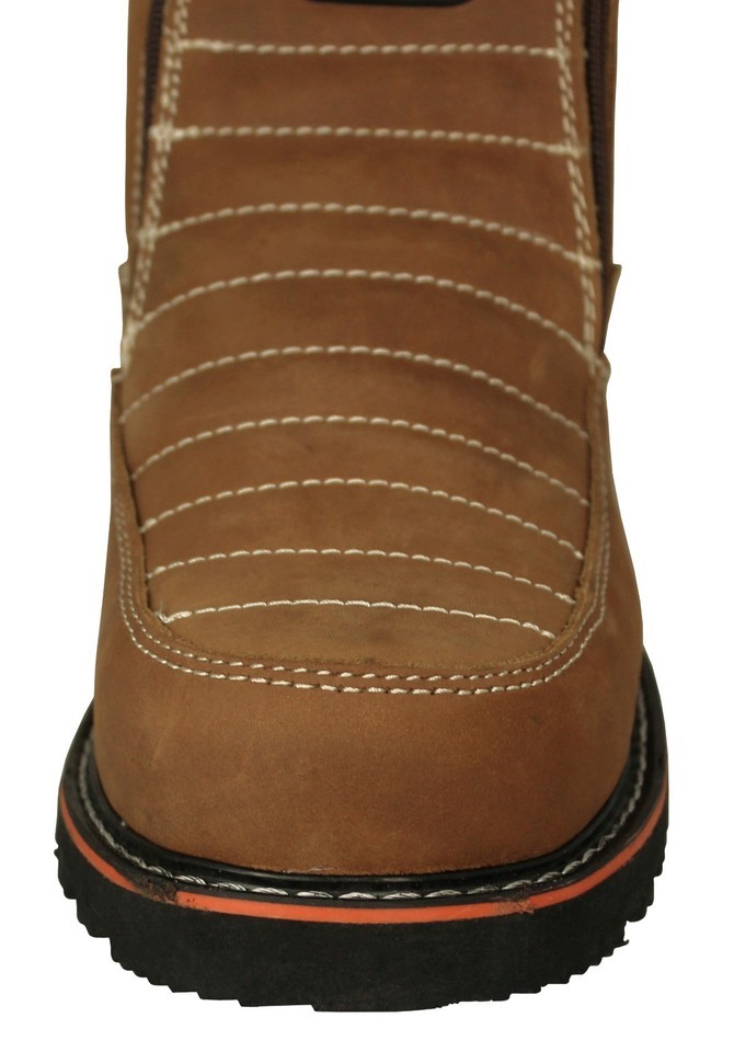 Mens Light Brown Work Boots Leather Slip Resistant Zip Up Ankle High Soft Toe
