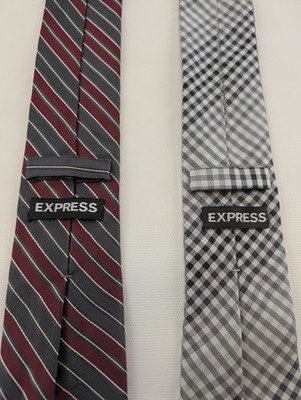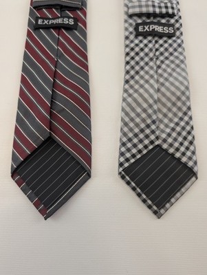 Express Silk Ties 100% Red Gray Striped Black White Gingham Lot (2) Men?s. Condition is Pre-owned - Good. Shipped with USPS Ground Advantage.