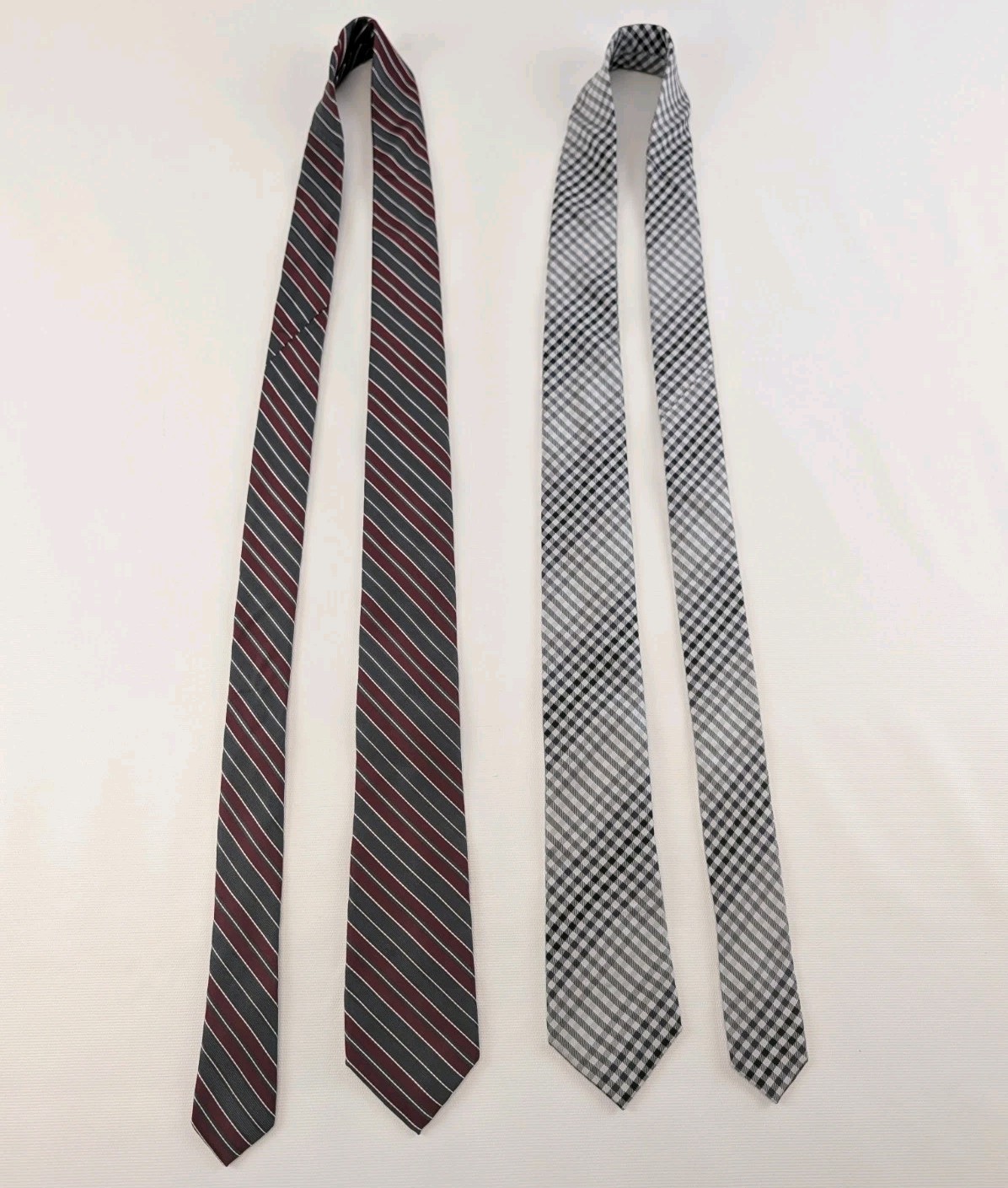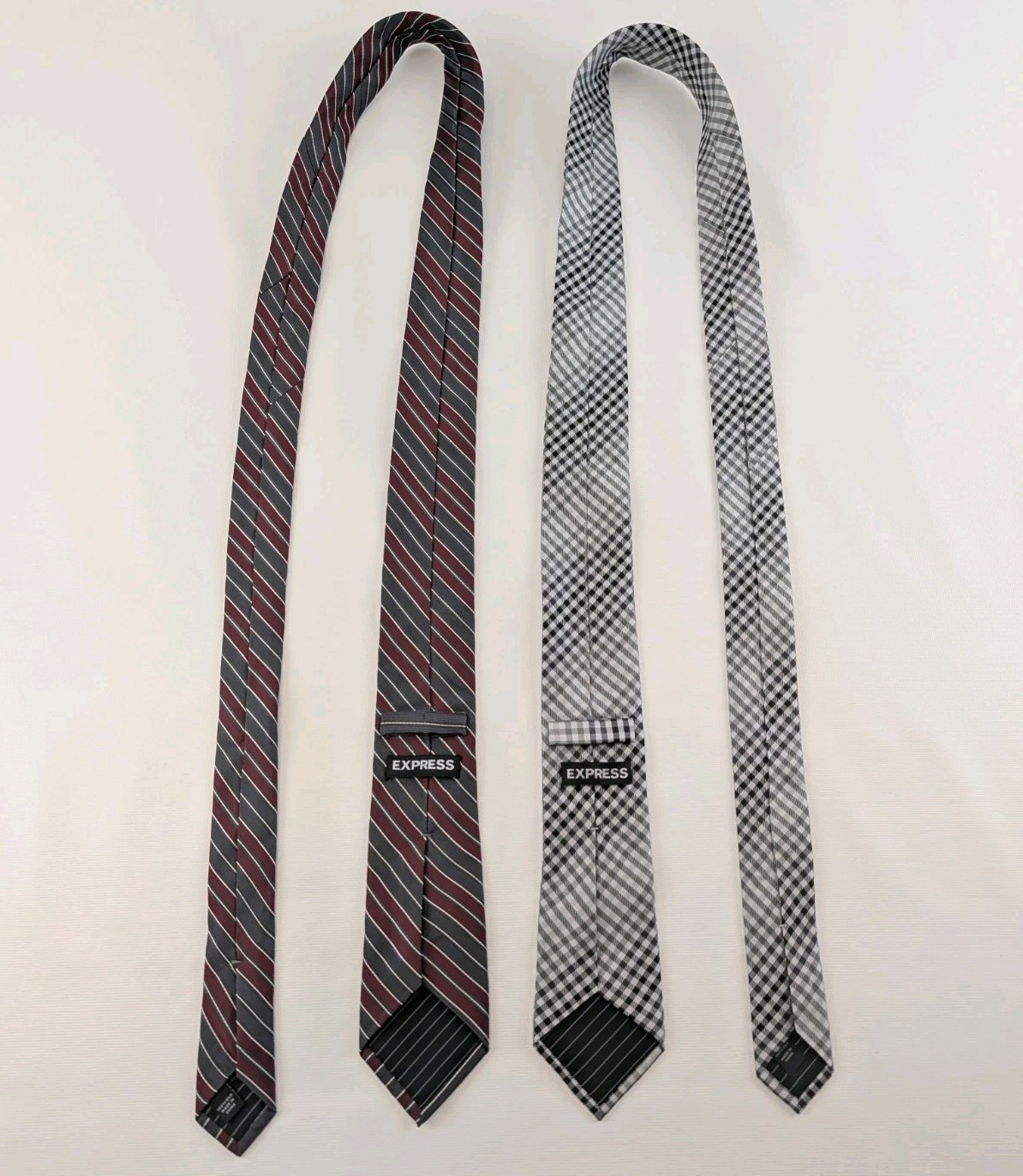 Express Silk Ties 100% Red Gray Striped & Black White Gingham Lot (2) Men’s