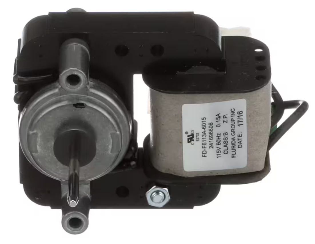 The Frigidaire FD-F6113A-6015 / 241696606 Condenser Fan Motor (115V, 60HZ) is a genuine OEM replacement part for Frigidaire refrigerators. This motor circulates air across the condenser coils to remove heat, ensuring efficient cooling performance. A failing condenser fan motor can cause higher operating temperatures and reduced efficiency?replacing it restores proper airflow and reliable operation.