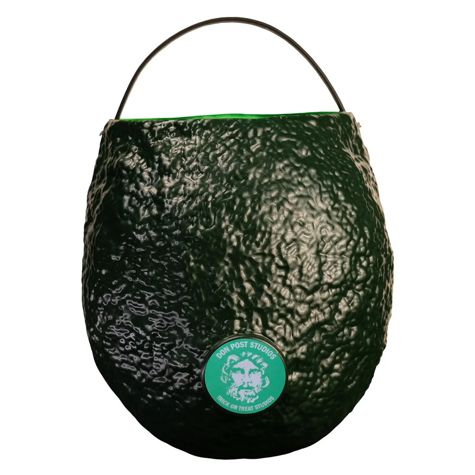 Crafted from durable blow mold plastic, this 9" tall candy pail brings the classic Don Post Skull Mask to life in retro style. This candy pail features painted details and a flexible plastic handle making it perfect for trick or treating.