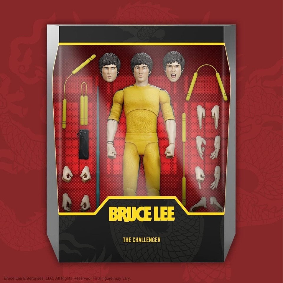 Super7?s latest wave of ULTIMATES! pays tribute to the gone-all-too-soon legend with two of his most iconic looks, the Challenger and the Warrior. These 7" scale, highly-articulated figures come with interchangeable parts and additional iconic accessories, making them the ultimate collectible for any Bruce Lee fan.