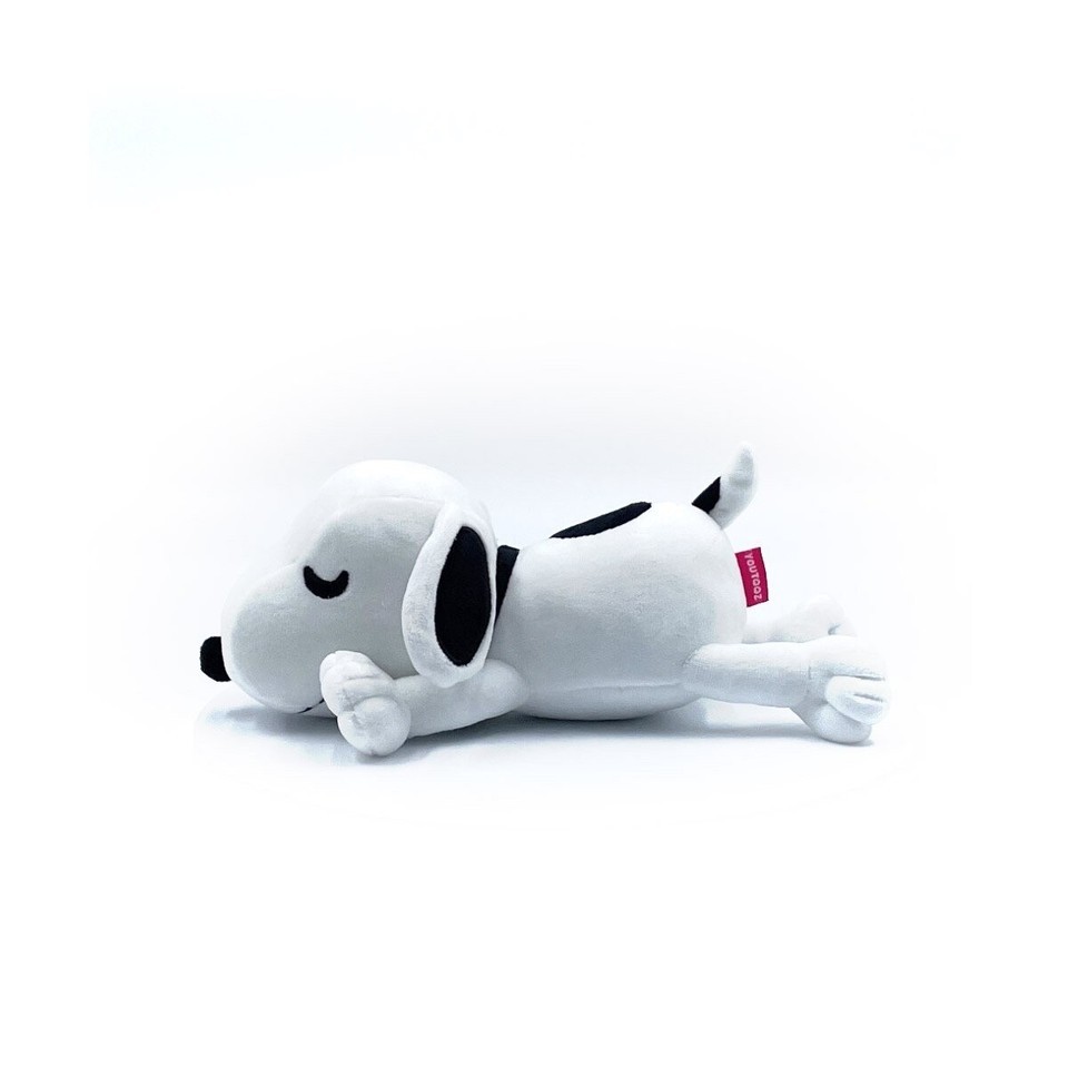 Snoopy has switched up positions to ?flop? down on his belly for this sleepy plush! Laying down at 9 inches long all four of his legs are kicked out lazily, with his two front paws resting at the side of his sleepy head. His long white body is perfectly contrasted with a deep black nose and spots, while his small tail sticks up blissfully. This plush is packed to the seams with 100% PP cotton and is made of a normal minky material, absolutely perfect for cuddling or sleeping the day away.