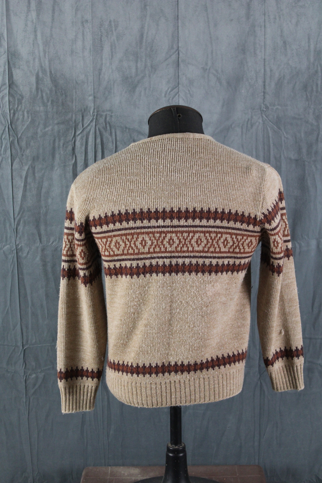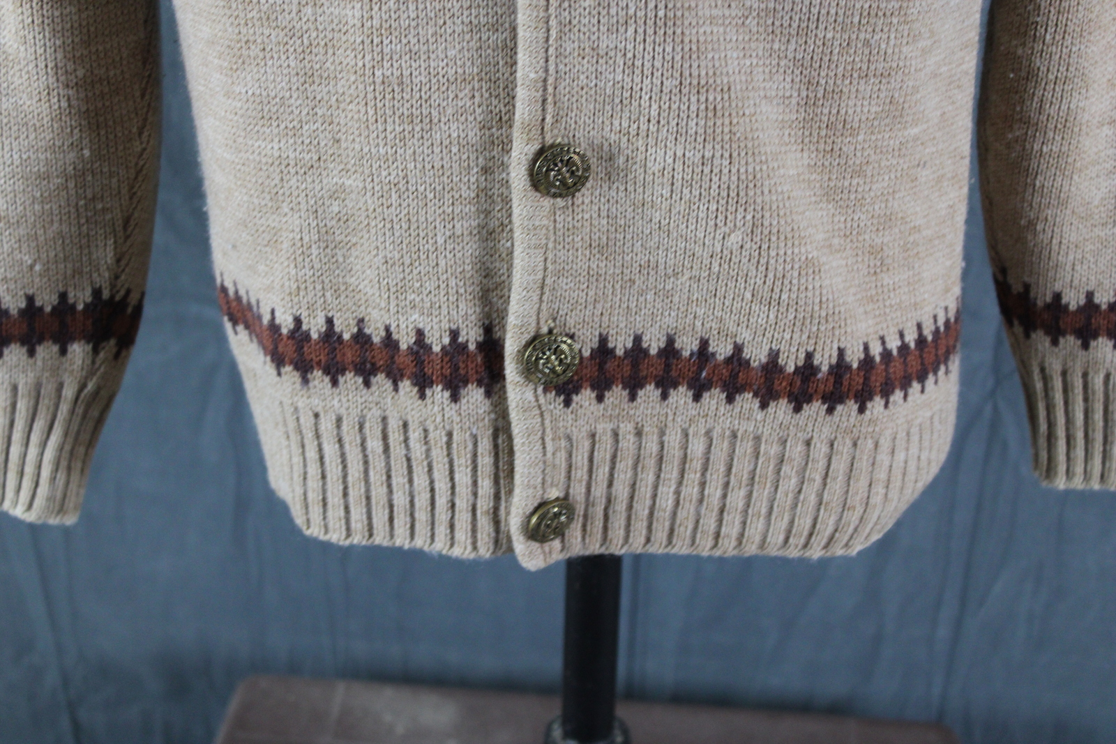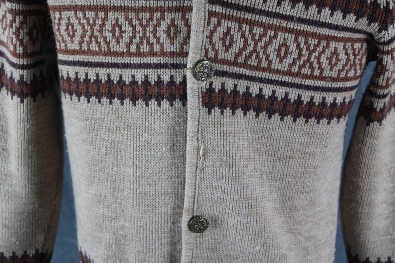 Vintage Button Down Sweater - Tan with Geometric Pattern - Men's Small