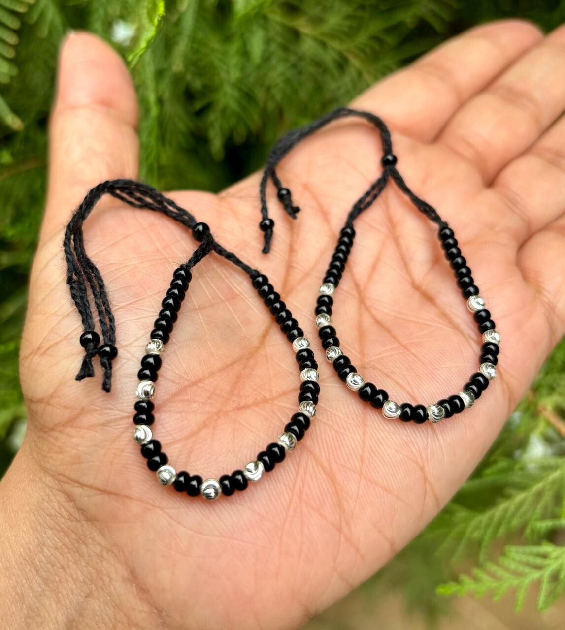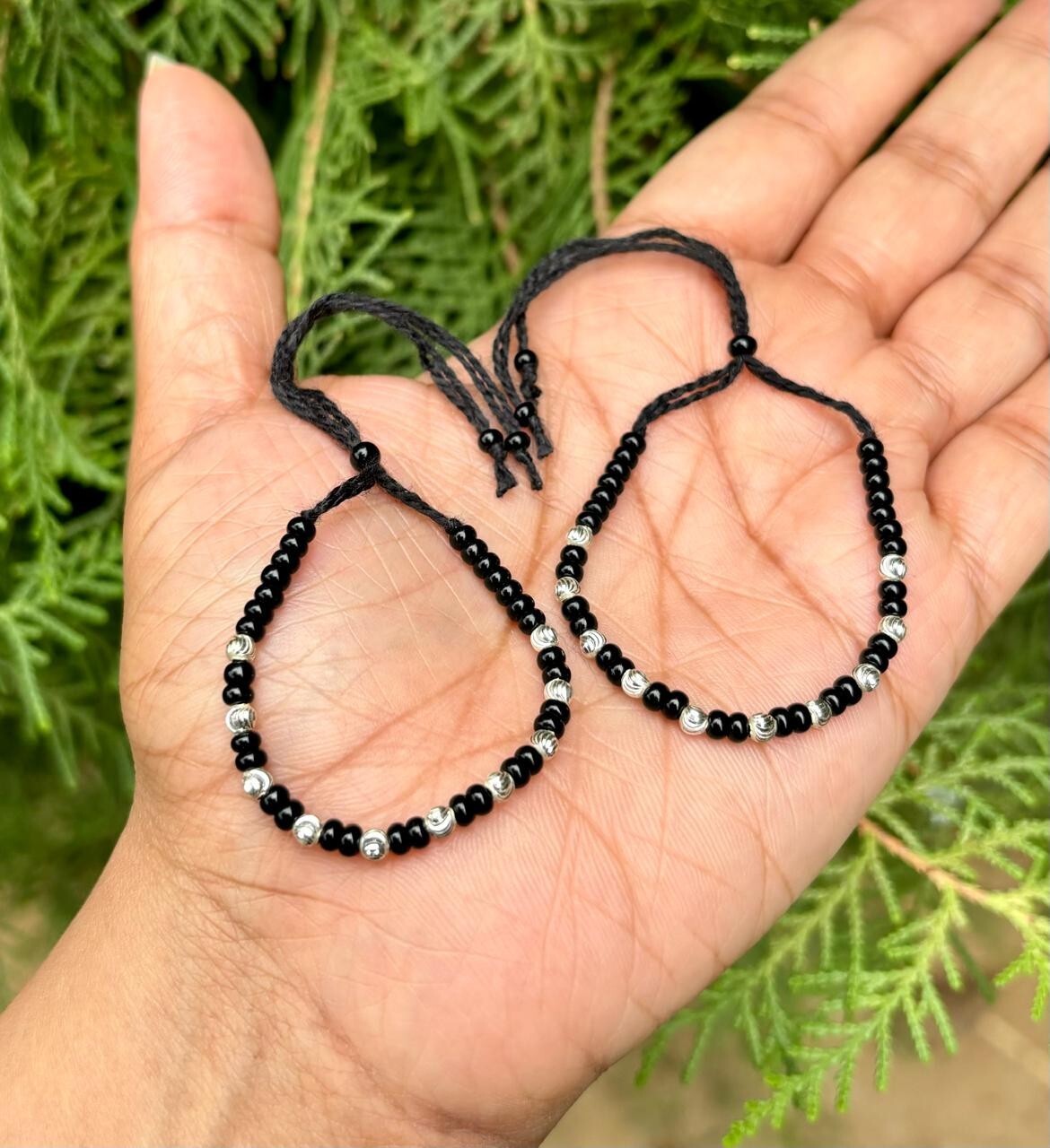 Bracelet de protection contre les mauvais yeux en argent 925 2 pieces, amulette Nazariya pour enfants, nourrissons, nouveau-nes, bijoux en perles noires, fait main, reglable 2