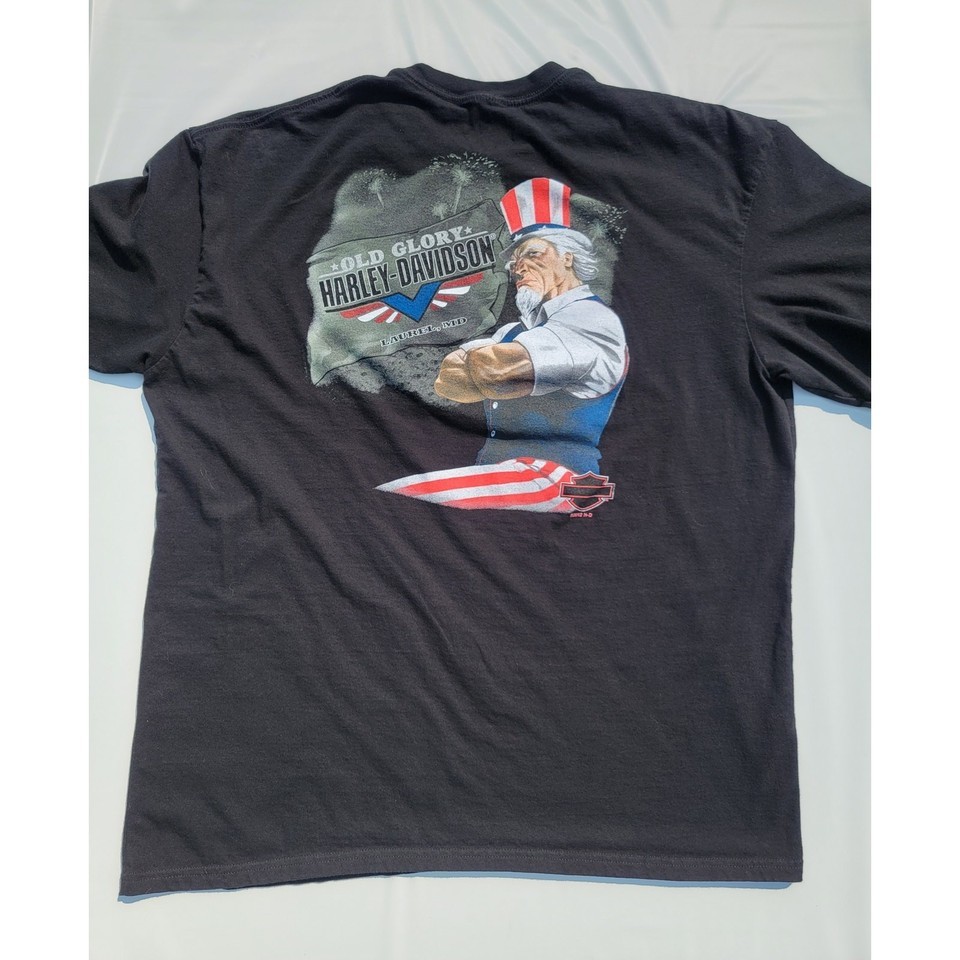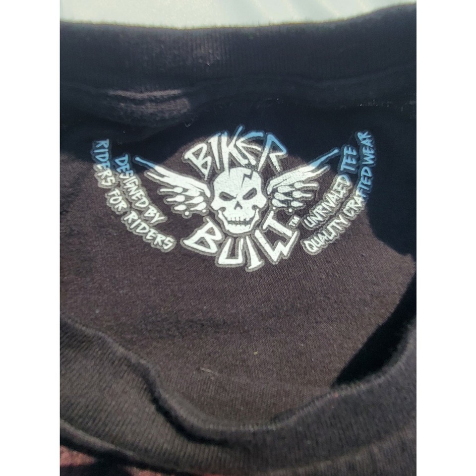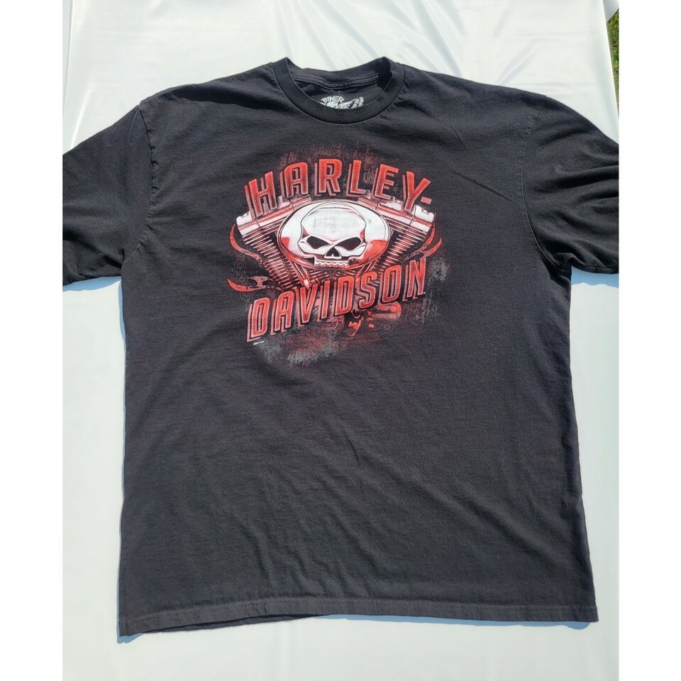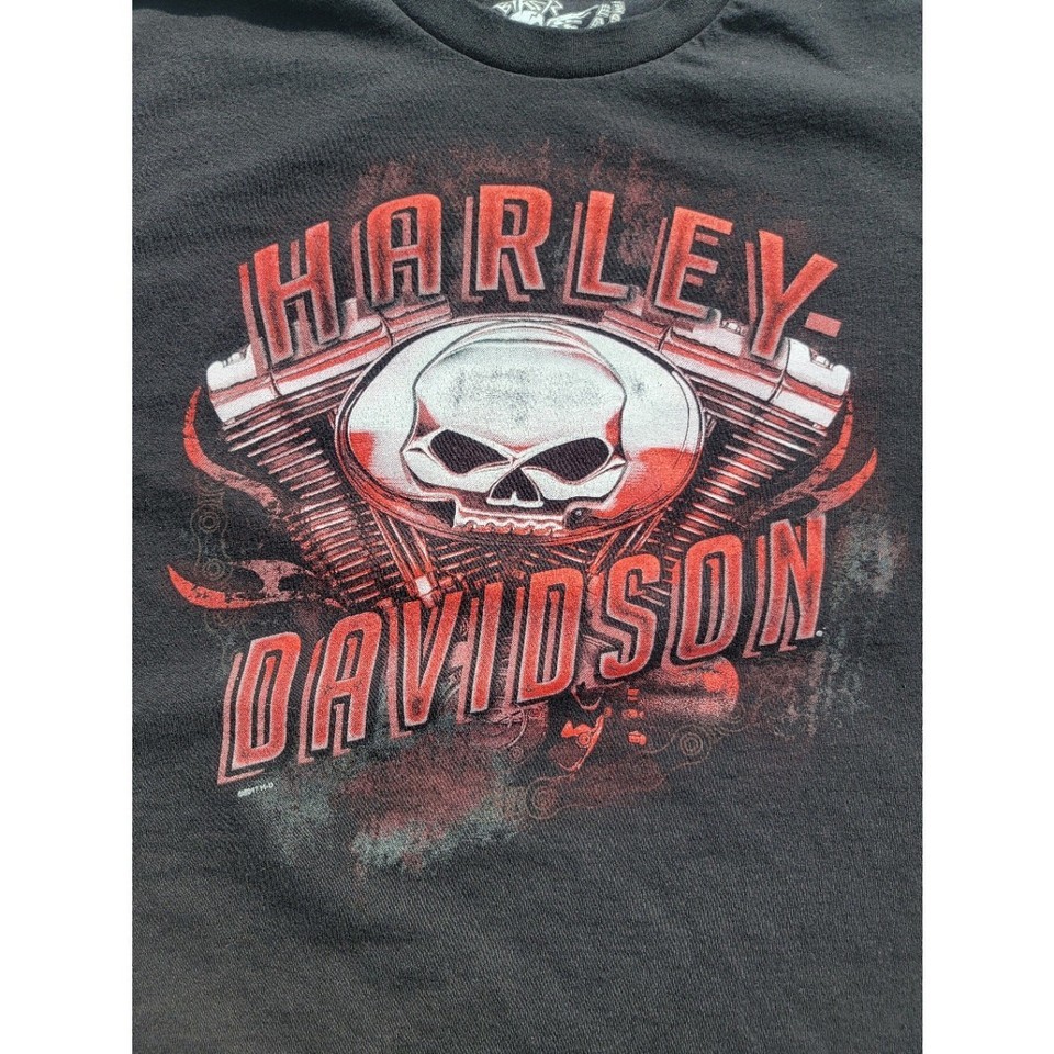 Harley Davidson Biker Built Black T-Shirt Skull Engine Motor Size XL