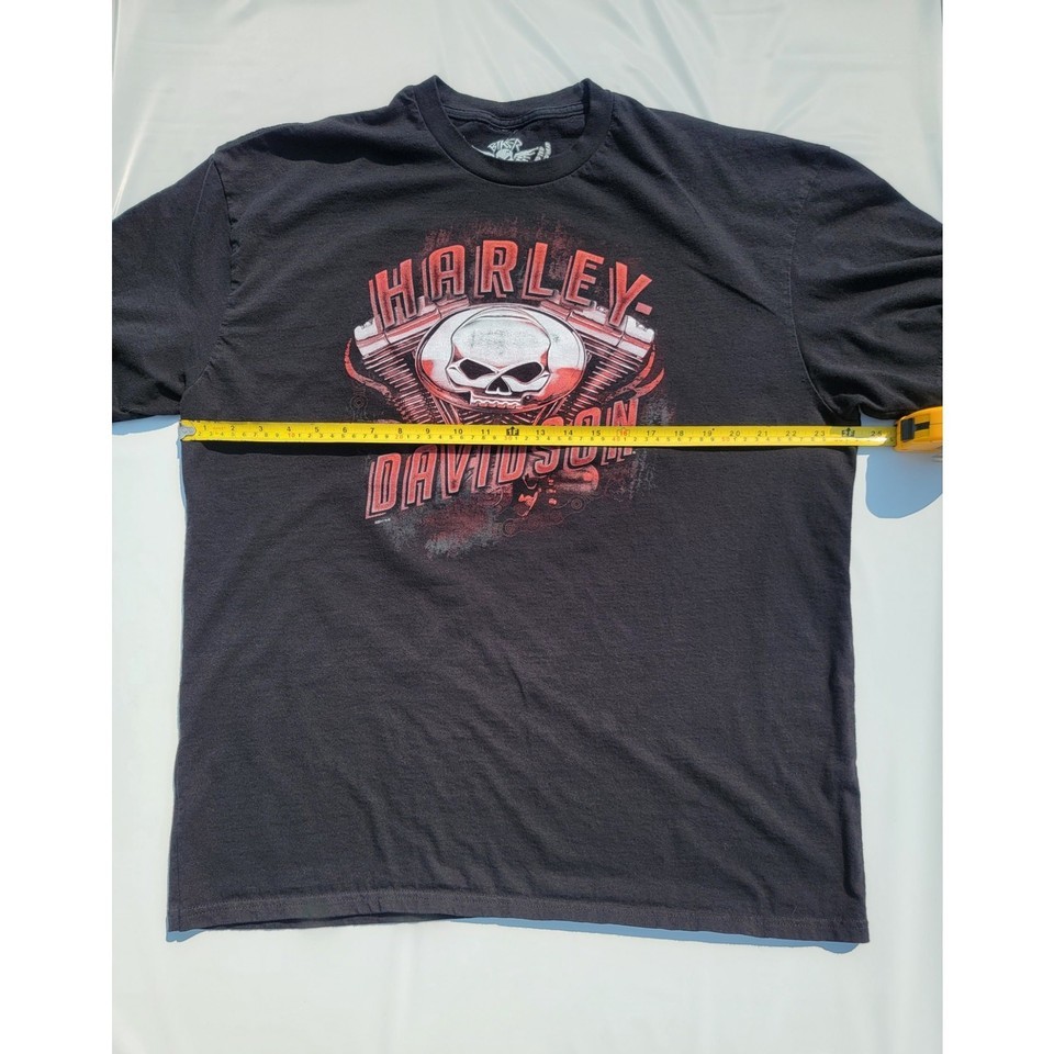 Harley Davidson Biker Built Black T-Shirt Skull Engine Motor Size XL 24"x30"