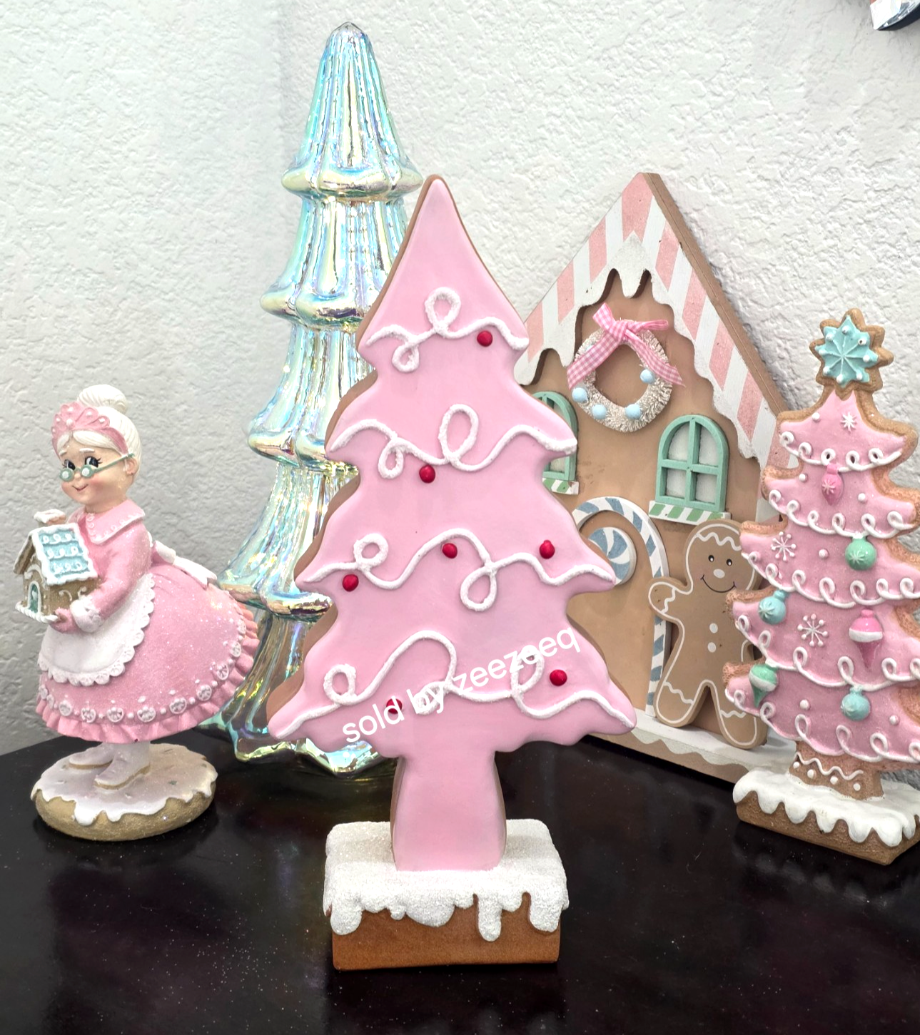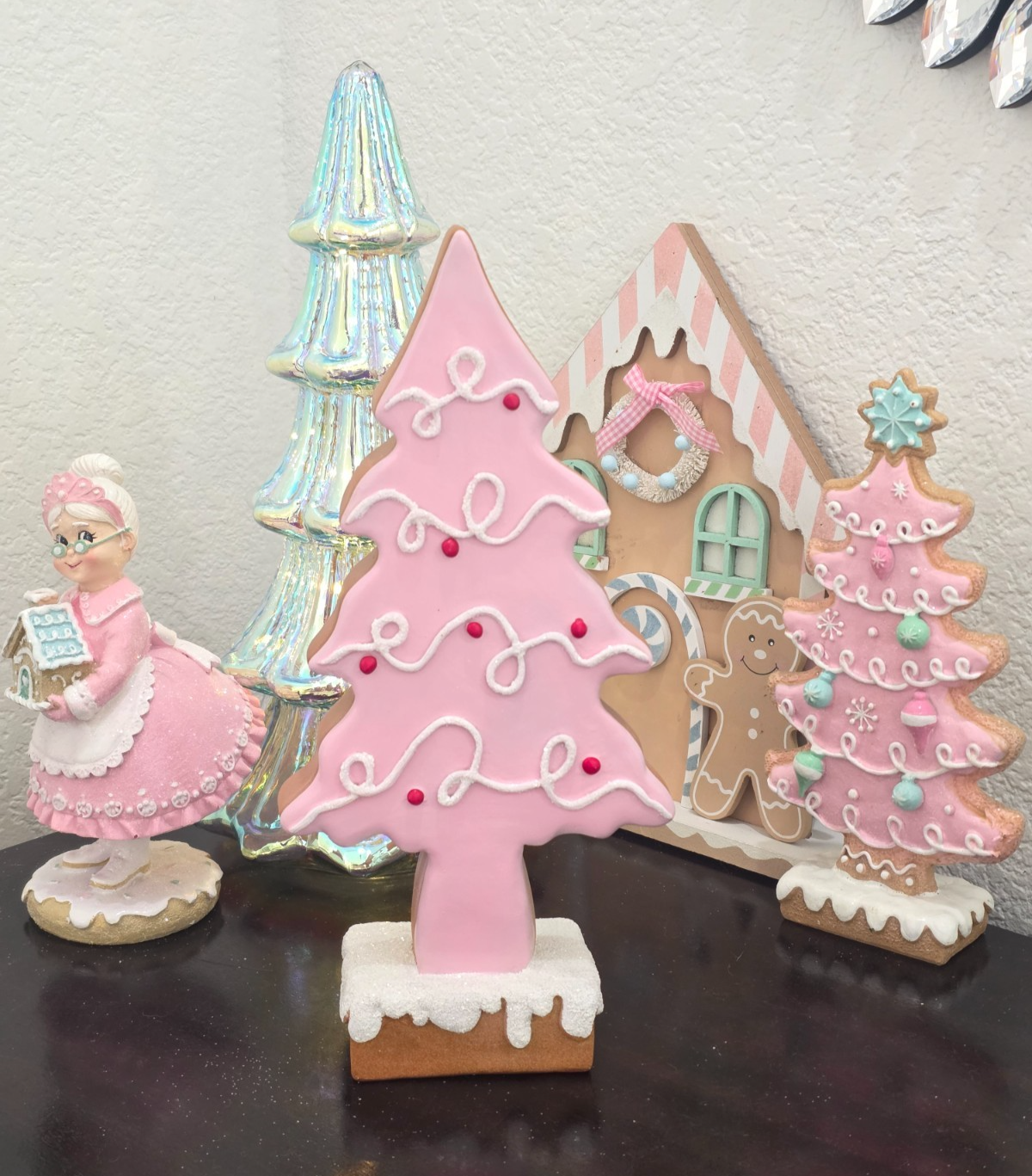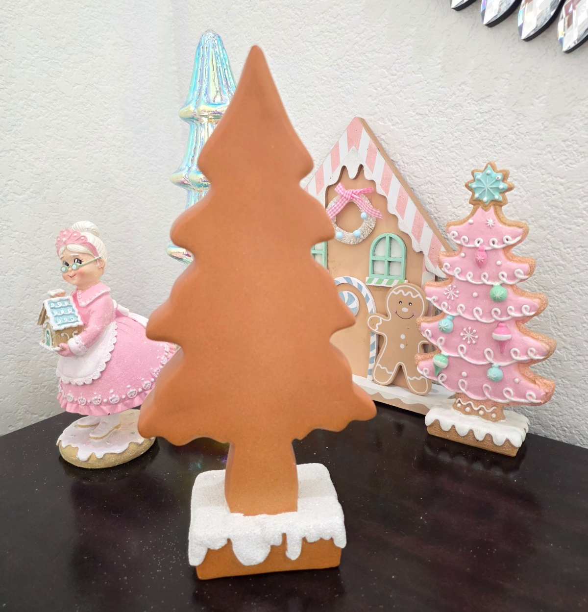 Gingerbread Pastel Pink Cookie Christmas Tree Figurine Candyland 12"