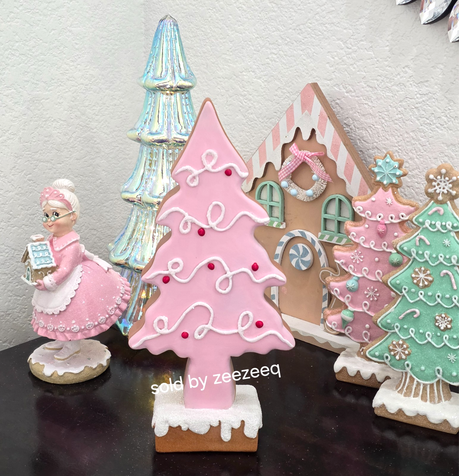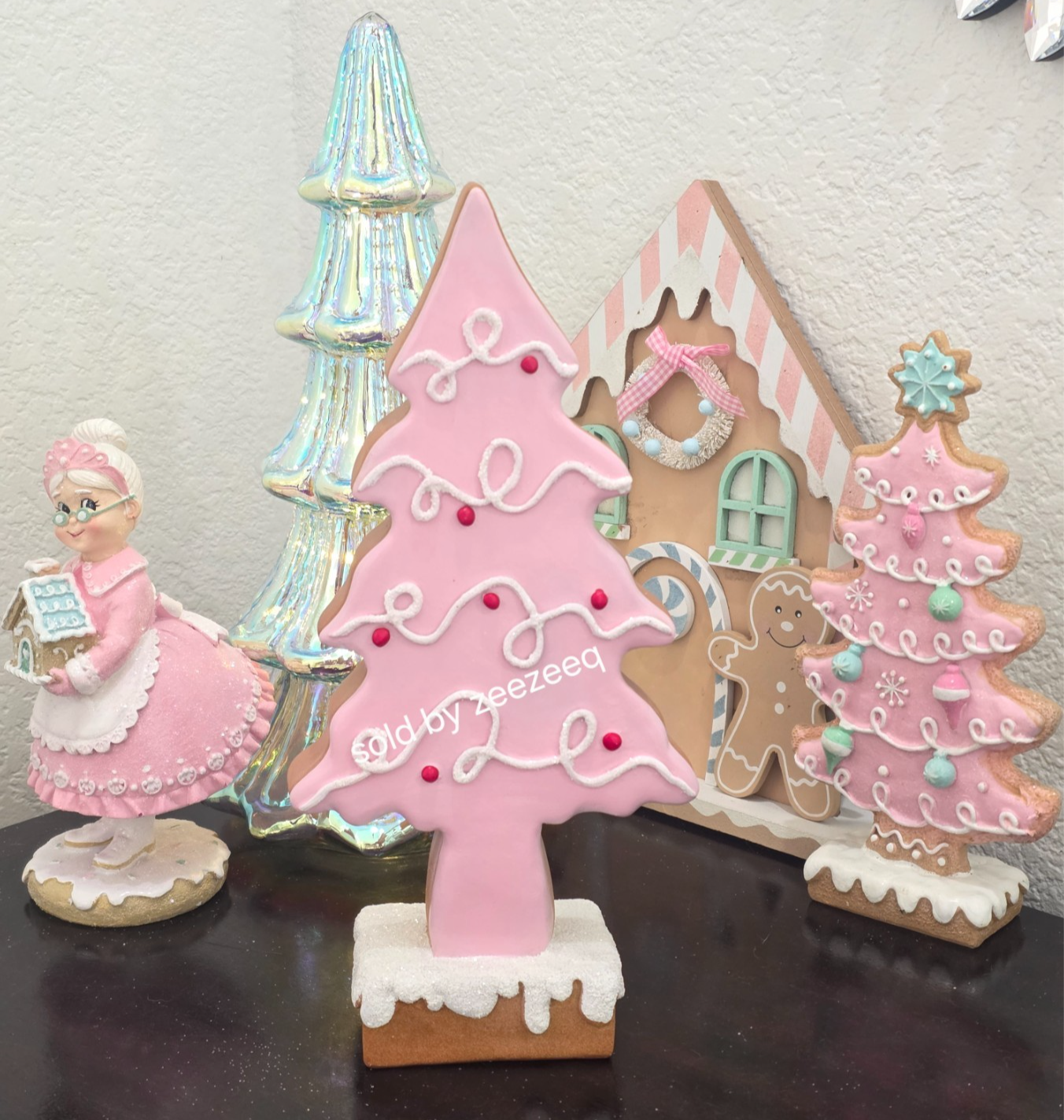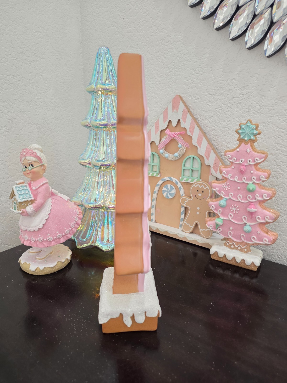 Gingerbread Pastel Pink Cookie Christmas Tree Figurine Candyland 12"