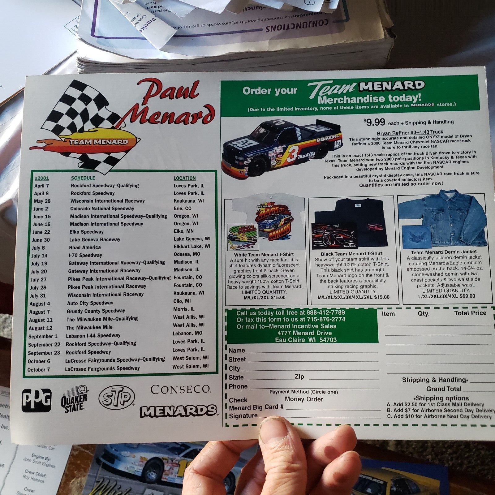 Veuillez consulter mes autres offres NASCAR de ce gentleman de vente. J'ai un autre lot de coureurs Auto, du meme circuit et du meme calendrier.