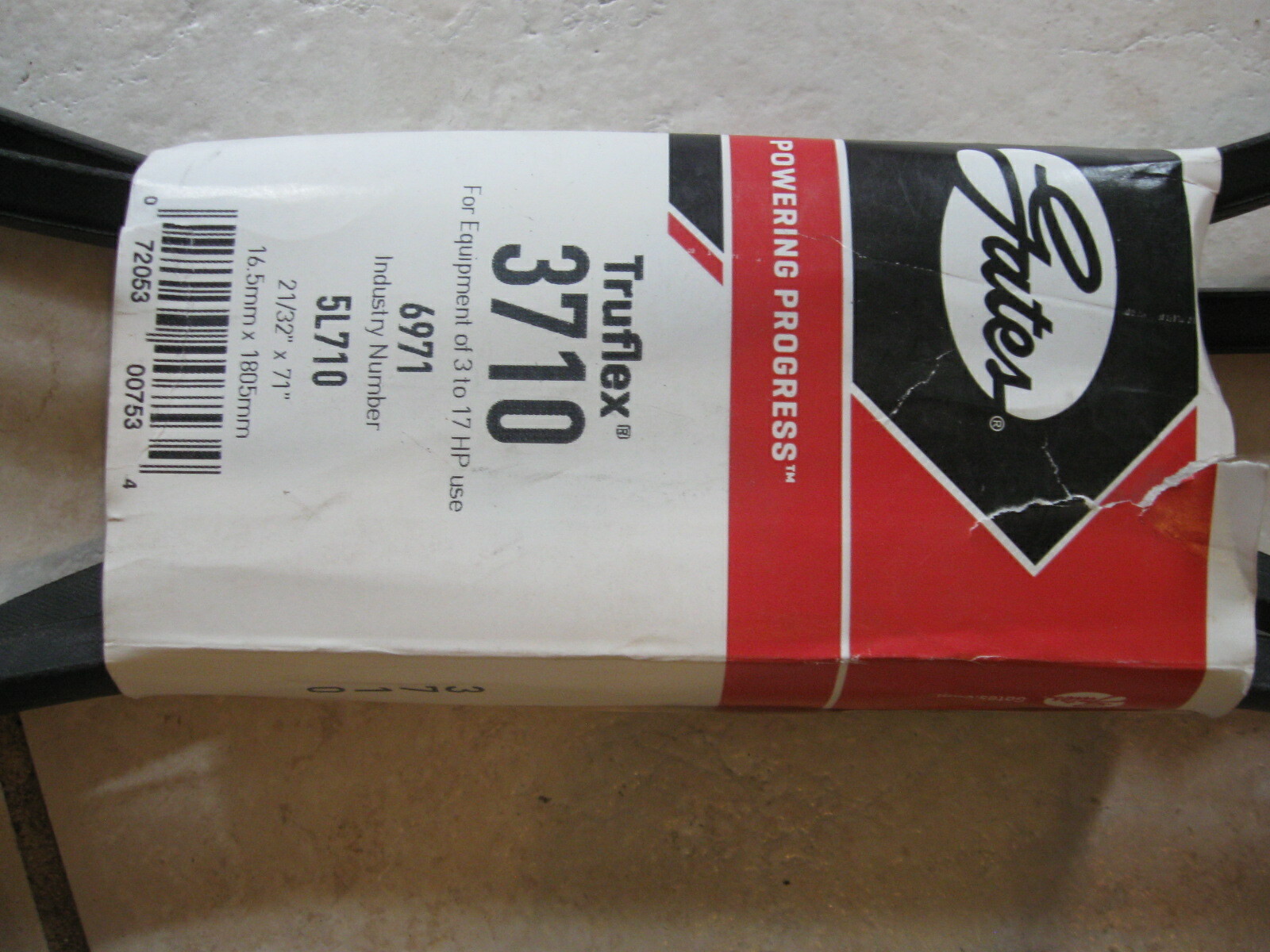 NEW Lot of 4 Gates Truflex Belts (3 - 17 Hp Use) 21/32" x 71" pn#- 3710 / 5L710 This is one hard to find belt. You get good deal on this. 1805 mm long - continuous from manufacturer: FREE SHIP Will ship international.