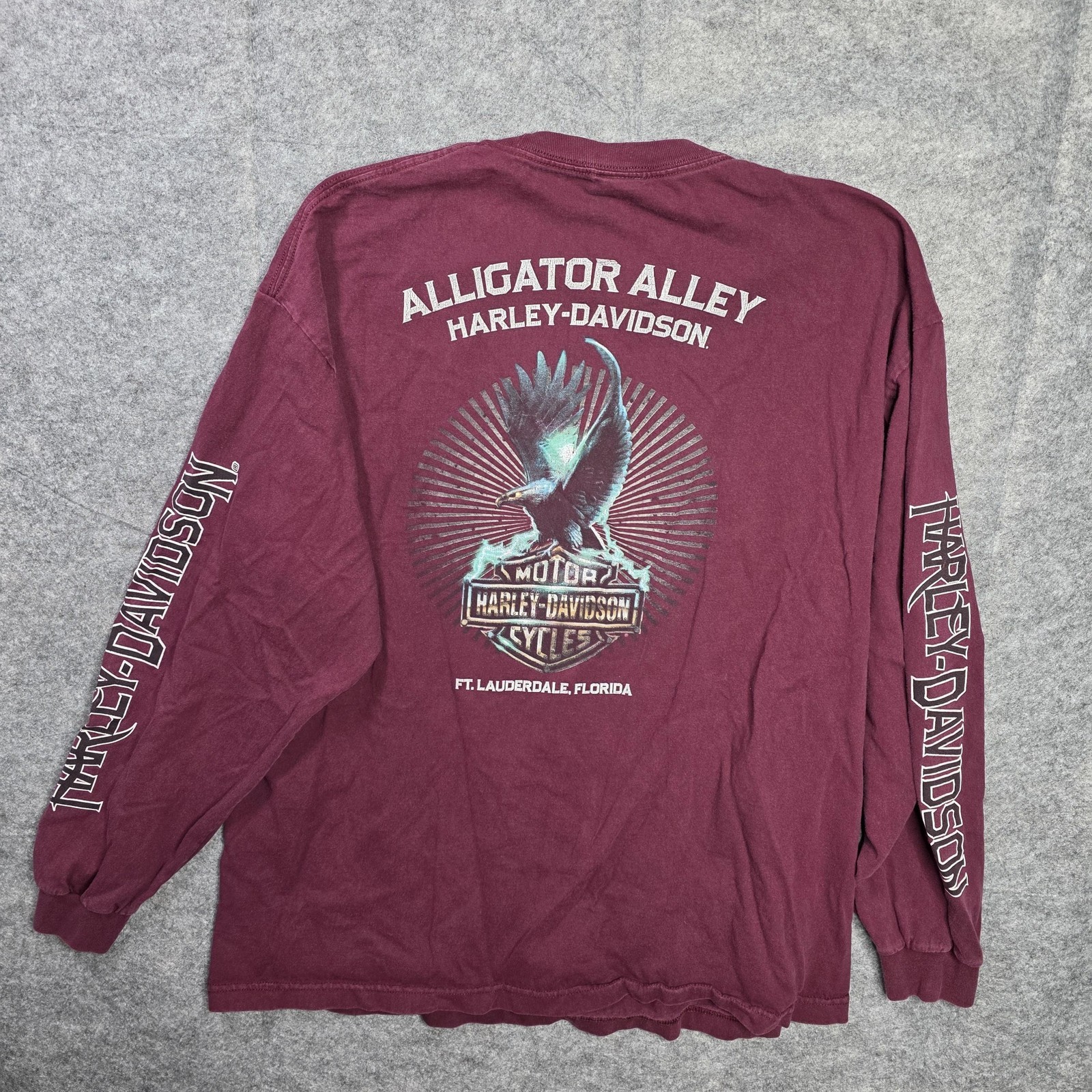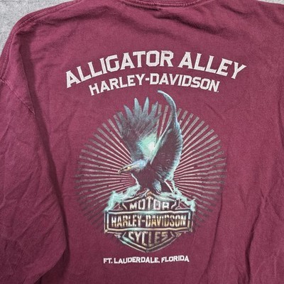 Harley-Davidson Shirt Mens 2XL Maroon Sleeve Hits Graphic Alligator Alley Eagle