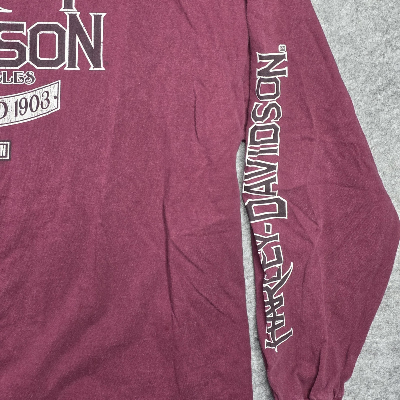 Sleeves: "Harley-Davidson" text down both sleeves