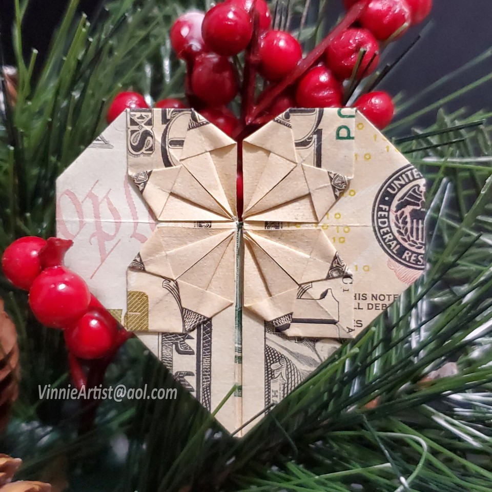 $10 Dollar Bill Heart Real Money Origami Handmade Christmas Gift Unique Ten Cash